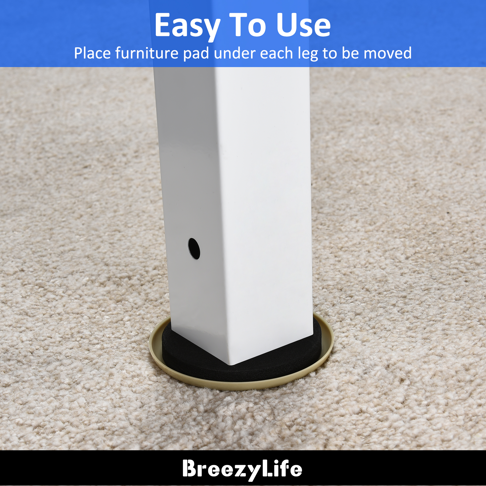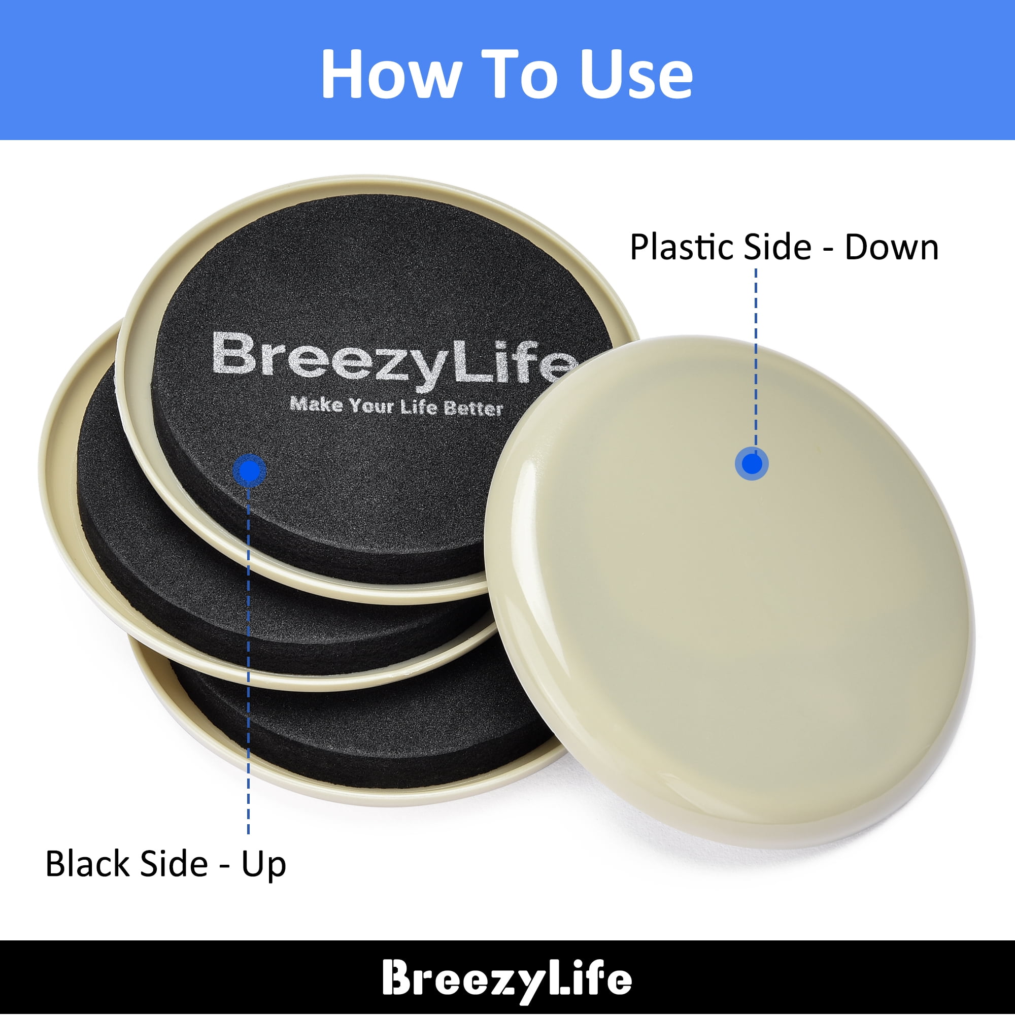 Being made of high-quality plastics, BreezyLife carpet furniture pads will have you move your heavy furniture, such as chairs, tables, and beds, much easier. The way you use would be straightforward: simply put the sliders under your chair legs. The next step is to enjoy smooth moving experiences. In addition, the furniture pads for carpet can protect your heavy furniture from getting damaged by inappropriate manual moves. The essential mechanism of our carpet furniture sliders has been proved reliable and safe. That is, our moving pads will never hurt or bend up your furniture. It has been proved that if the sliders and legs are working against each other by any chance, our carpet protector sliders break first without damaging any part of the furniture that it had been stuck with.