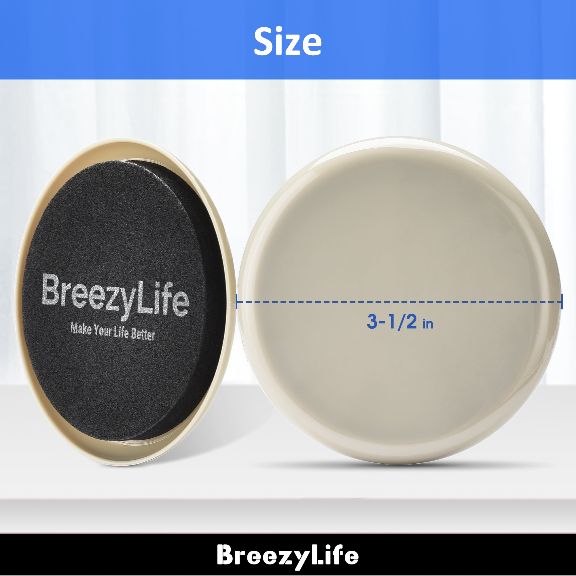 BreezyLife 3 1/2-inch Beige Round Plastic Furniture Sliders for Carpets,16 Pack