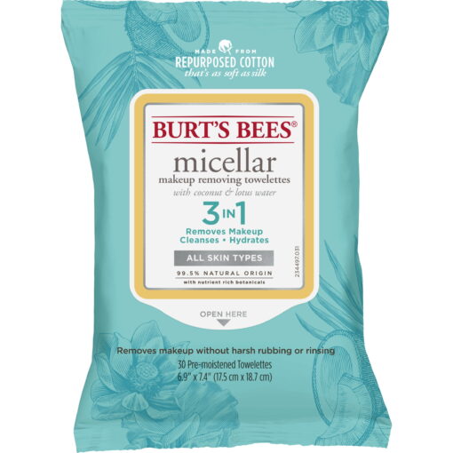 Burt’s Bees Micellar Towelettes 3 in 1 Coconut & Lotus Water, 30 Count