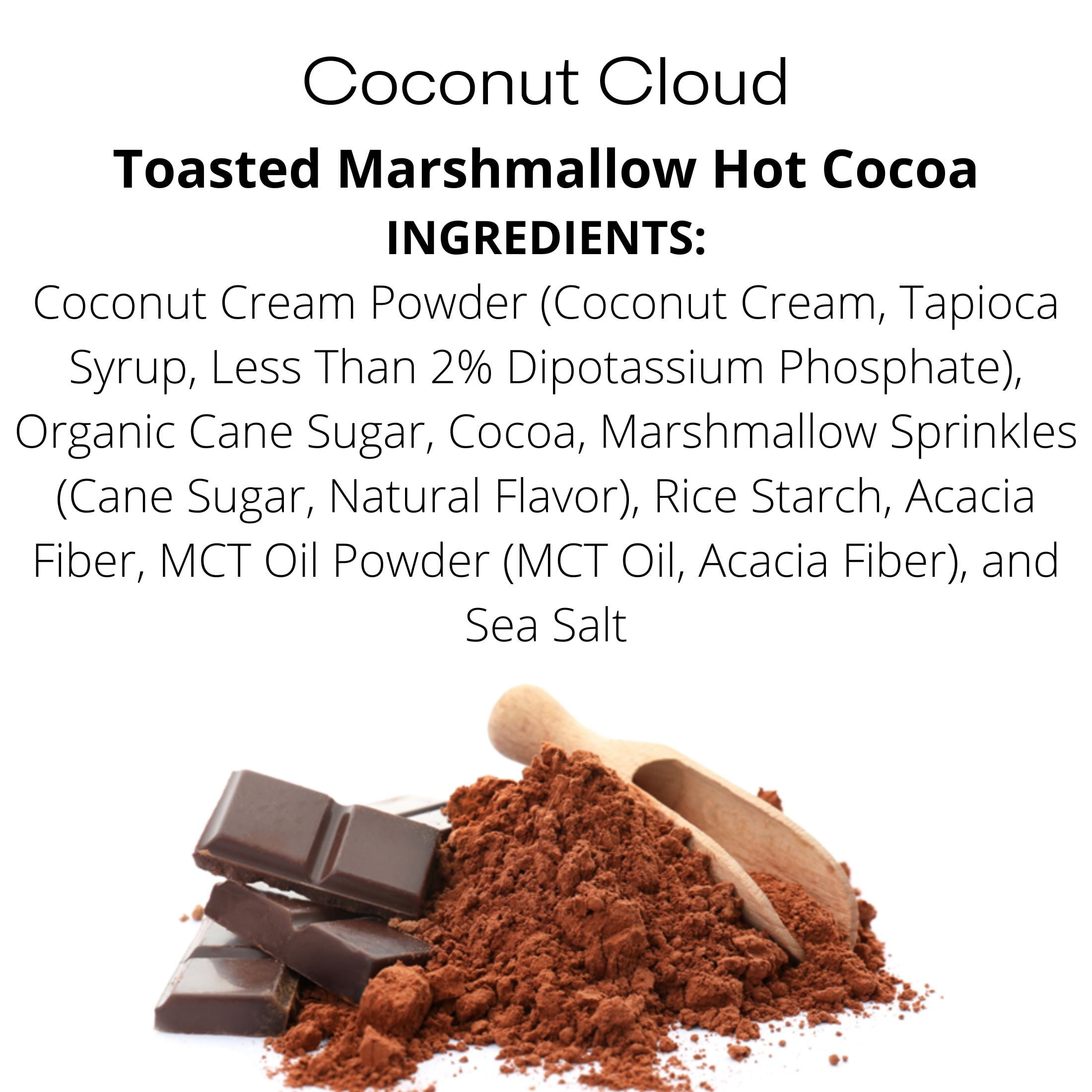 • Coconut Cloud Toasted Marshmallow hot cocoa is a delicious dairy free hot cocoa mix with the added flavor of sweet, toasted marshmallow.