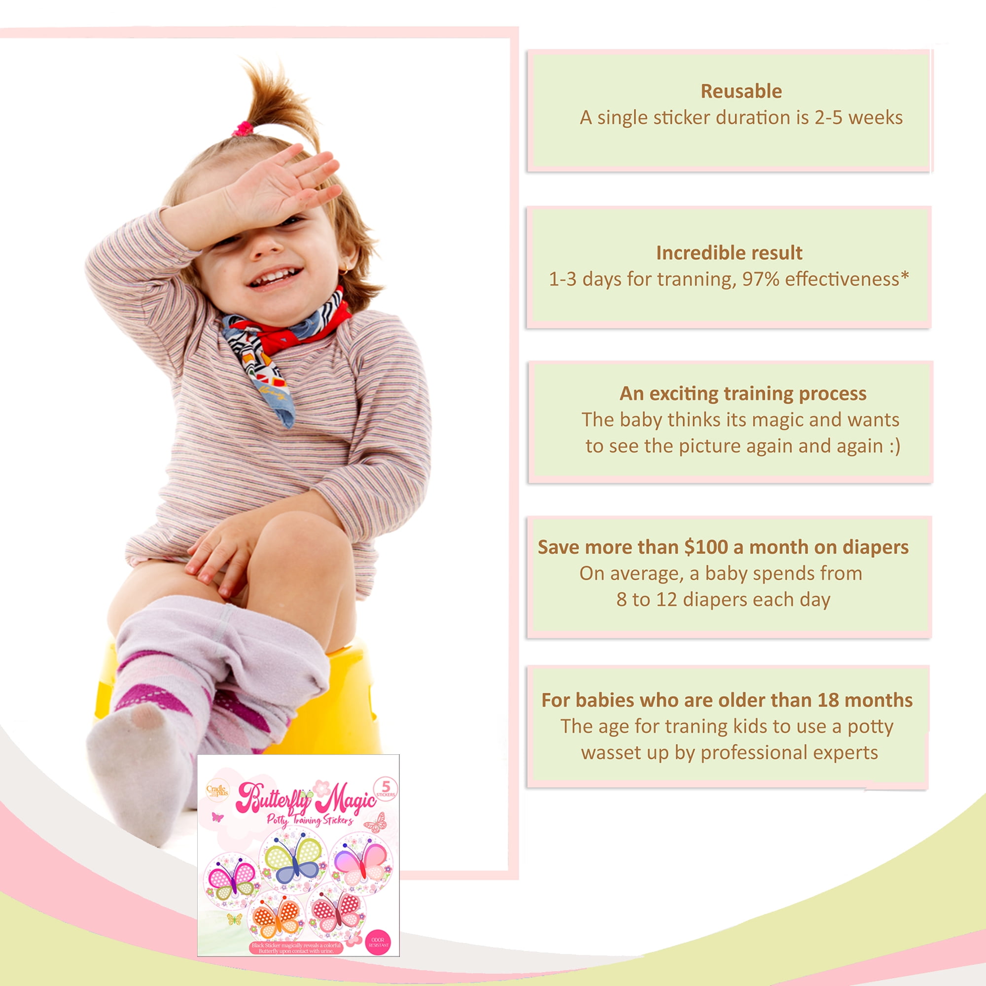 Cradle Plus Potty Training Color Changing Butterfly Seat Magic Stickers, Unisex 5 Pack
