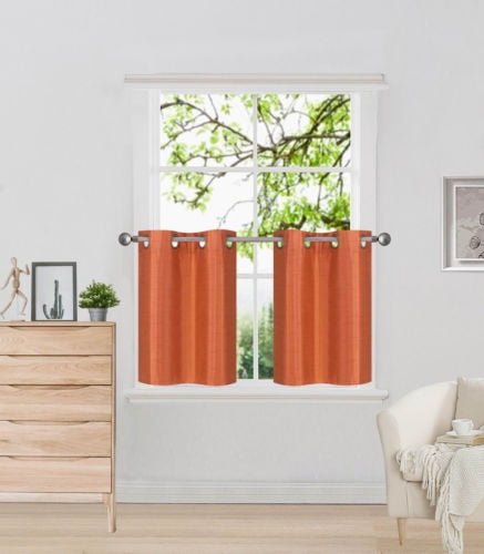 D2 Orange 1-Pair of Solid Insulated Grommet Treatment Curtains for Short Windows, Livingroom, Bathroom or Kitchen, Two (2) Piece Faux Silk Blackout Tier Panels 30′ Wide x 24′ Length Each