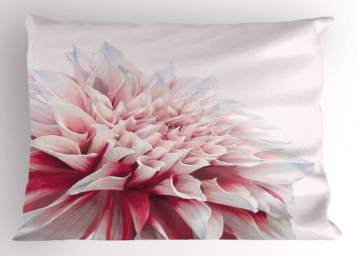 Dahlia Pillow Sham Close Up Dahlia Blossom with Red and White Petals One Single Large Flower, Decorative Standard Size Printed Pillowcase, 26 X 20 Inches, Ruby Ivory White, by Ambesonne