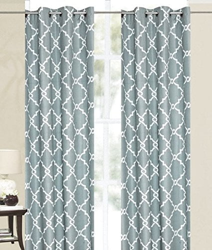 Diamond Chain Print Thermal Insulated 100% Blackout Window Grommet Curtain Panel – Gray