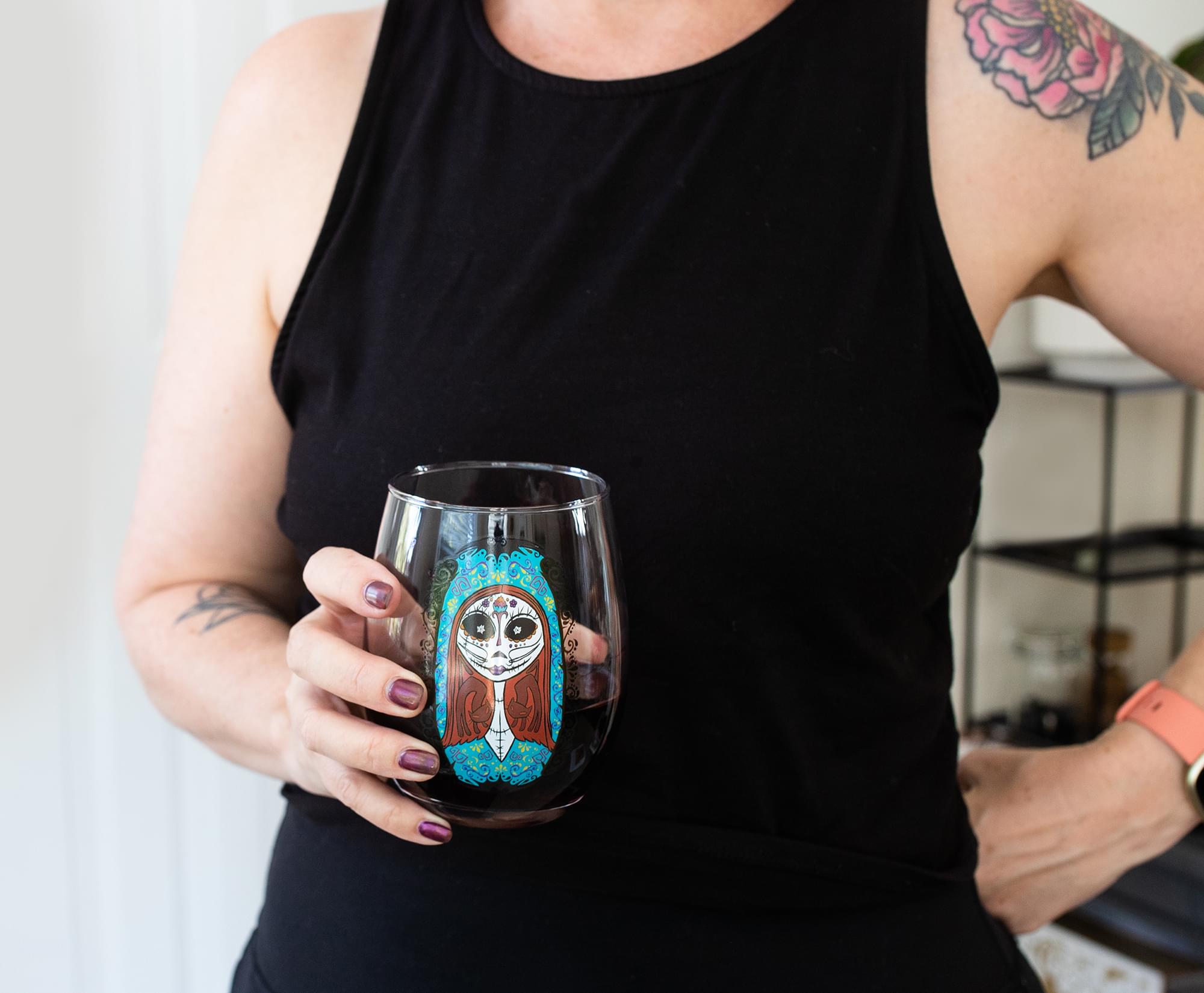 - Made for Disney Fans: Drink up with these officially licensed stemless wine glasses featuring Jack and Sally. This exclusive Day of the Dead drinkware makes a spooktacular addition to any home barware collection.