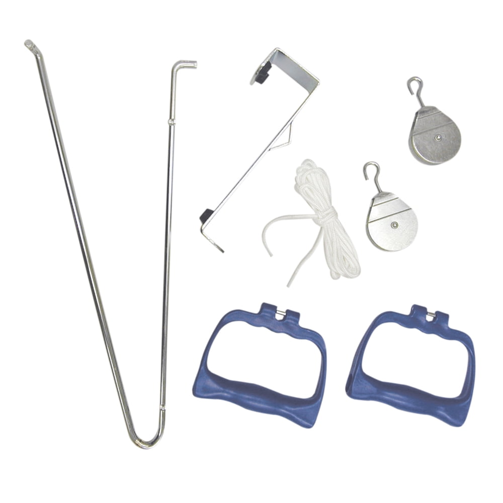 This exercise pulley set comes with basic traction hardware that fits over the door and uses two hand grips suspended on two metal pulleys. It is designed to exercise upper body extremities easily and safely. It helps increase range of motion in arms while stimulating muscles and easily fits over most standard doors. Do Physical Therapy Exercises at Home Similar to those used in physical therapy offices, this DMI Exercise Pulley Set makes it easy to continue your exercises at home at an affordable price. Excellent for exercising upper arms and shoulders after surgery or to recover from injuries. Also makes it handy for anyone wanting to exercise their arms. It fits on most doors and won’t get in the way when you’re not using it. It’s easy to install and even easier to use. Features: Comes with basic traction hardware that fits over the door. Uses two hand grips suspended on two metal pulleys.