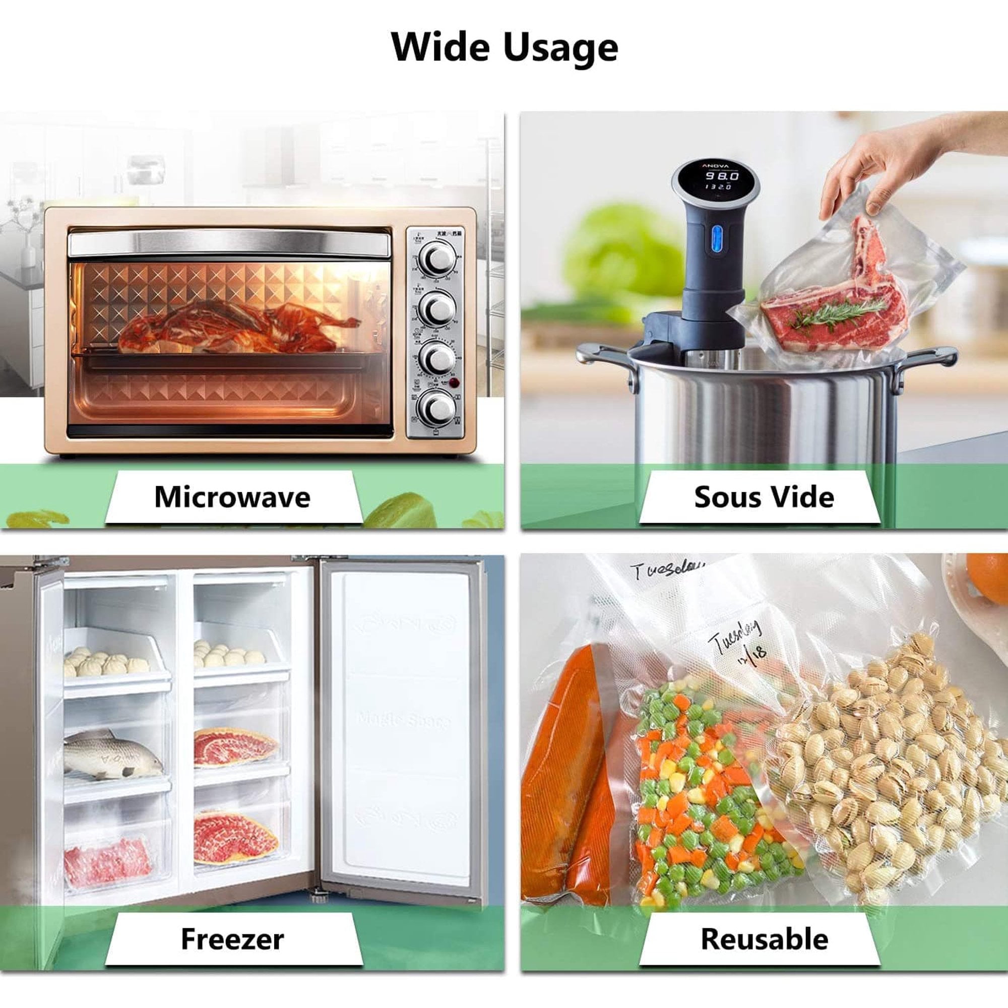 - Food Grade Material: Great for Storing Raw and Cooked Foods, It’s Also Cook,Freezable,Dishwasher,Microwave,and Boilable Safe.with Embossed Channels Increase Suction to Vacuum and Secure to Seal