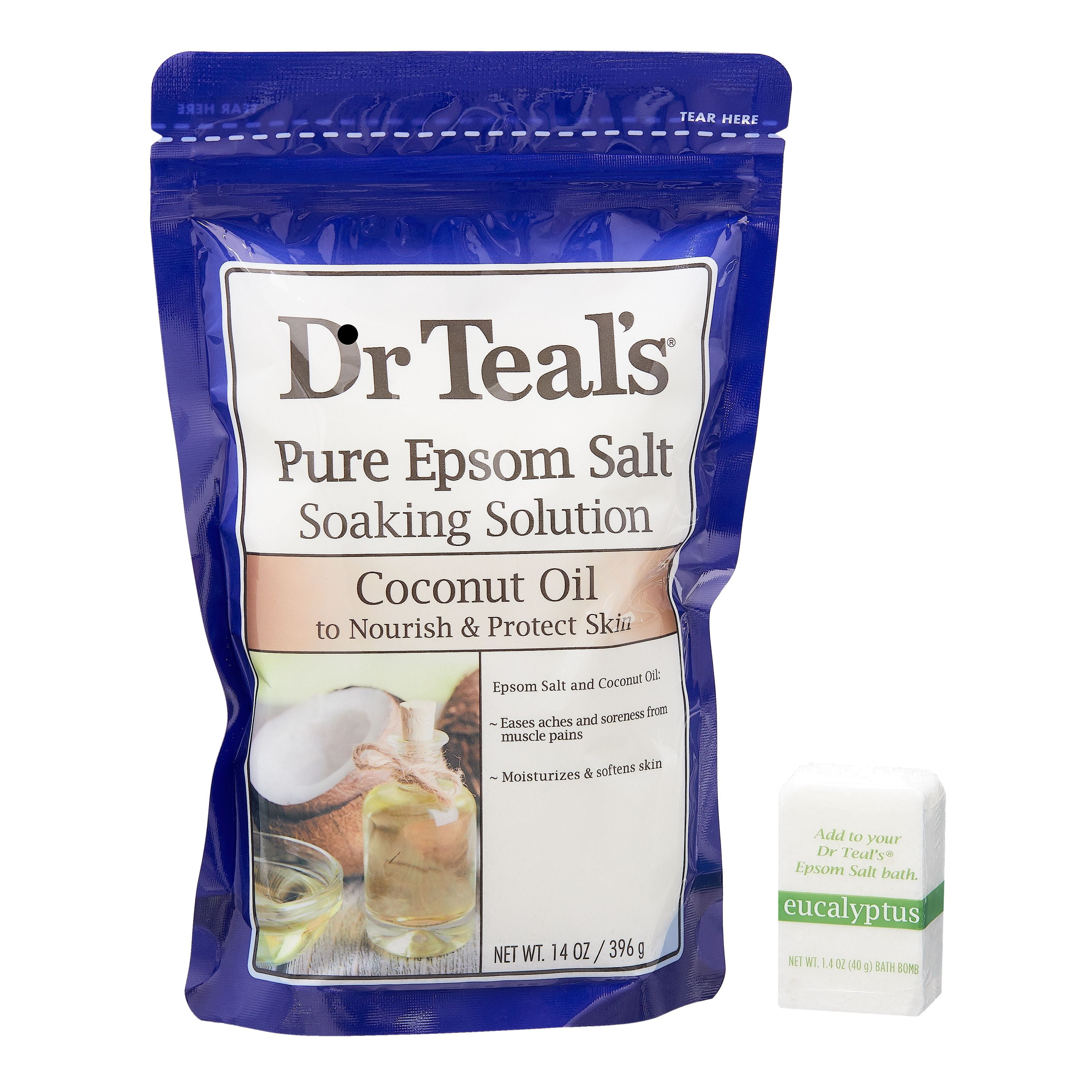 - Set includes three 14 oz. pure Epsom salt soaks, and a bonus 4 oz. bath bomb