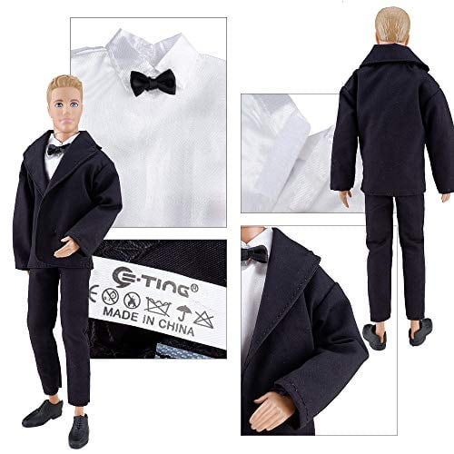 Get these unforgettable Wedding pack from E-TING and let your little girls doll dress up all their favorite dolls. There’s nothing quite like playing with Girl doll as a young girl. They’re our first best friends they keep all our secrets and they’re fun to dress up and send off on imaginary adventures. That’s why we created E-TING Wedding Dresses Set; handmade clothes that let you dress up your favorite plastic dolls in warm pure outfit that make their wedding unforgettable. Time for Dress Up! We’ve spent 6 years honing our crafting process including cutting stitching and trimming each finely-crafted clothes so that your little one can roleplay and create imaginative stories all her own. The princess meet boy doll at the birthday party and they fall in love at the first sight. Following their fairy tale their wedding was held in the palace garden and was attended by Bride’s close friends. The exquisite gown and tailored suit make these two lovebirds look more solemn. They finally find their soulmate! Important Brand Note Product Details: Fabric Blend: Cotton Polyester and Lace Handcrafted with Precision Care Bright Colors Lace Pleats and Other Dress Attributes Not Suitable for Children Under 36 Months Model Size: Bust 12cm Waist 8cm Buttocks 13cm High 29cm Dolls and shoes are Not Included Compatible For: 12a3Doll 11.5a3Doll.ETING Wedding Pack, Beautiful Gown Bride Dress Clothes with Veil and Groom Formal Outfit Business Suit for Barbie Ken Dolls Gift