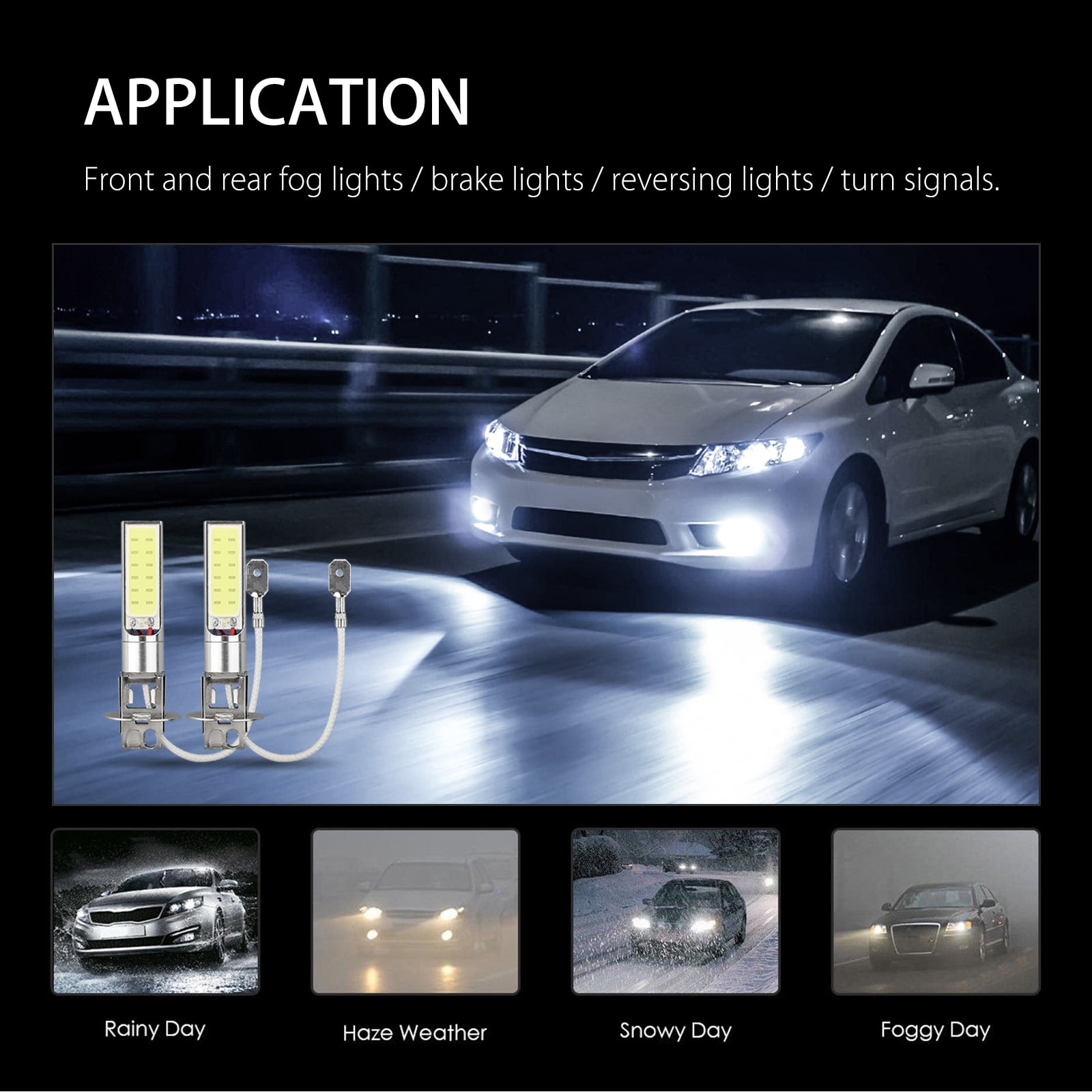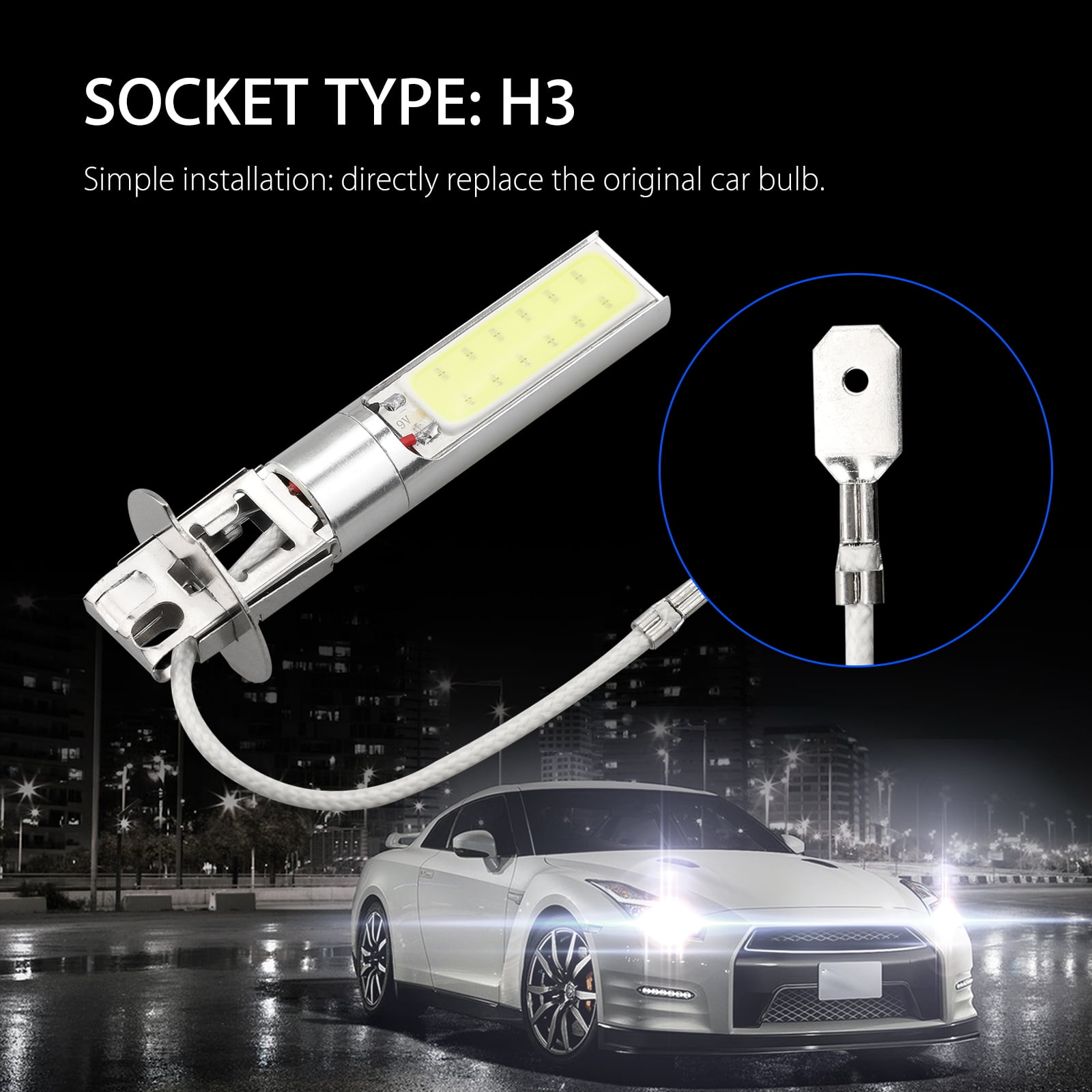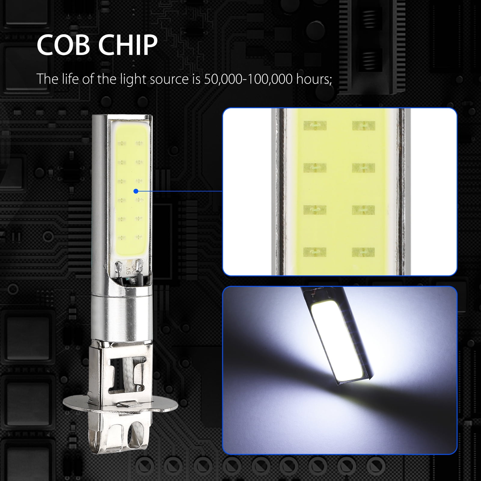 EEEkit 2 Pcs Extremely Bright LED H3 COB Chips 100W Extremely Bright White Color LED Fog Light Bulbs Plug-n-Play