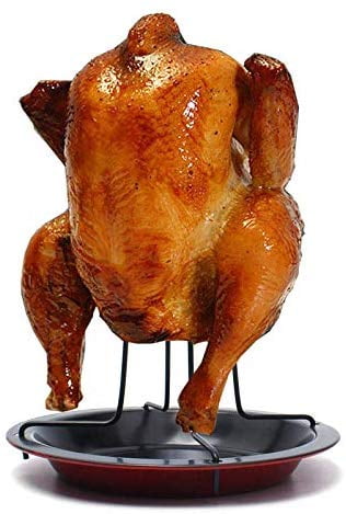 Eutuxia Chicken Roaster Rack for Oven, Grill, or BBQ – Sturdy Stainless Steel Vertical Poultry Turkey Standing Holder with Bowl – Must Have Indoor Outdoor Cooking Tool – Great for Home & Camping