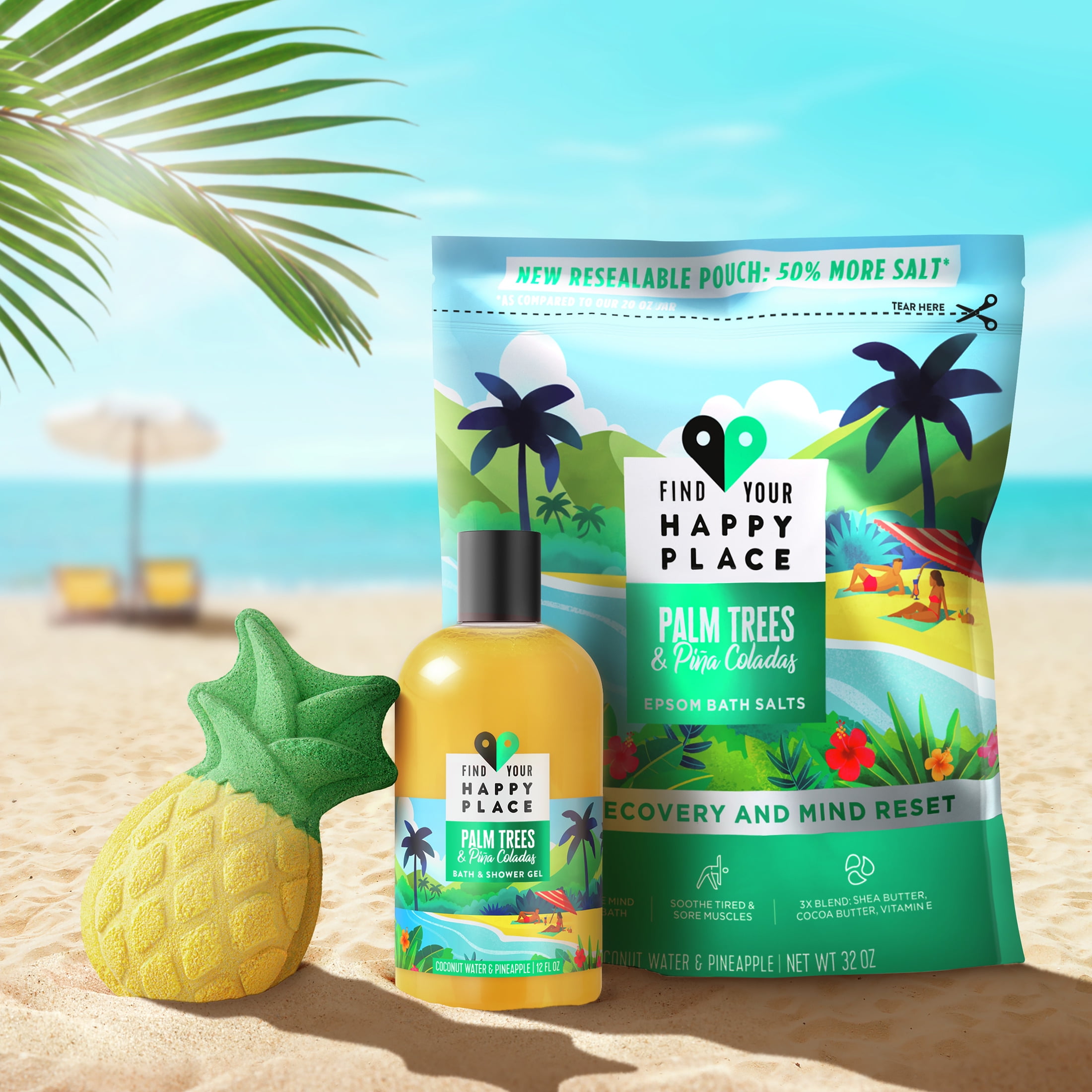 Find Your Happy Place Palm Trees and Pina Colada Bath and Shower Gel, 12 oz