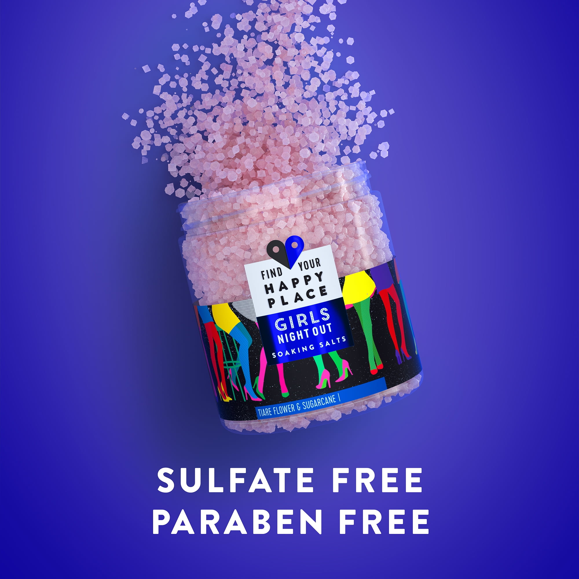 Find Your Happy Place Soaking Bath Salts Girls’ Night Out Tiare Flower and Sugarcane 20 oz
