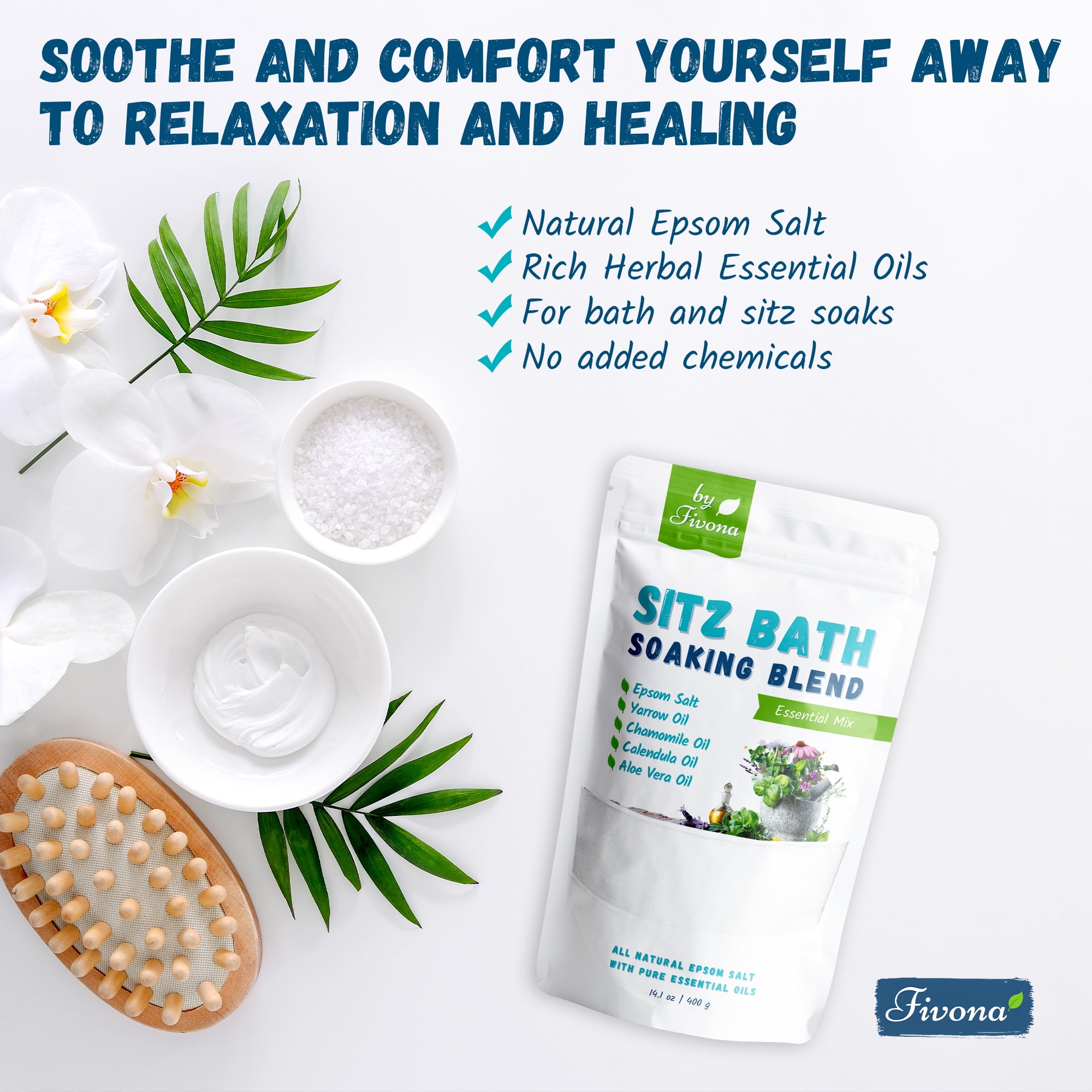Sitz Bath Soak Epsom Salt with Essential Oils Blend by Fivona – 14.1 oz