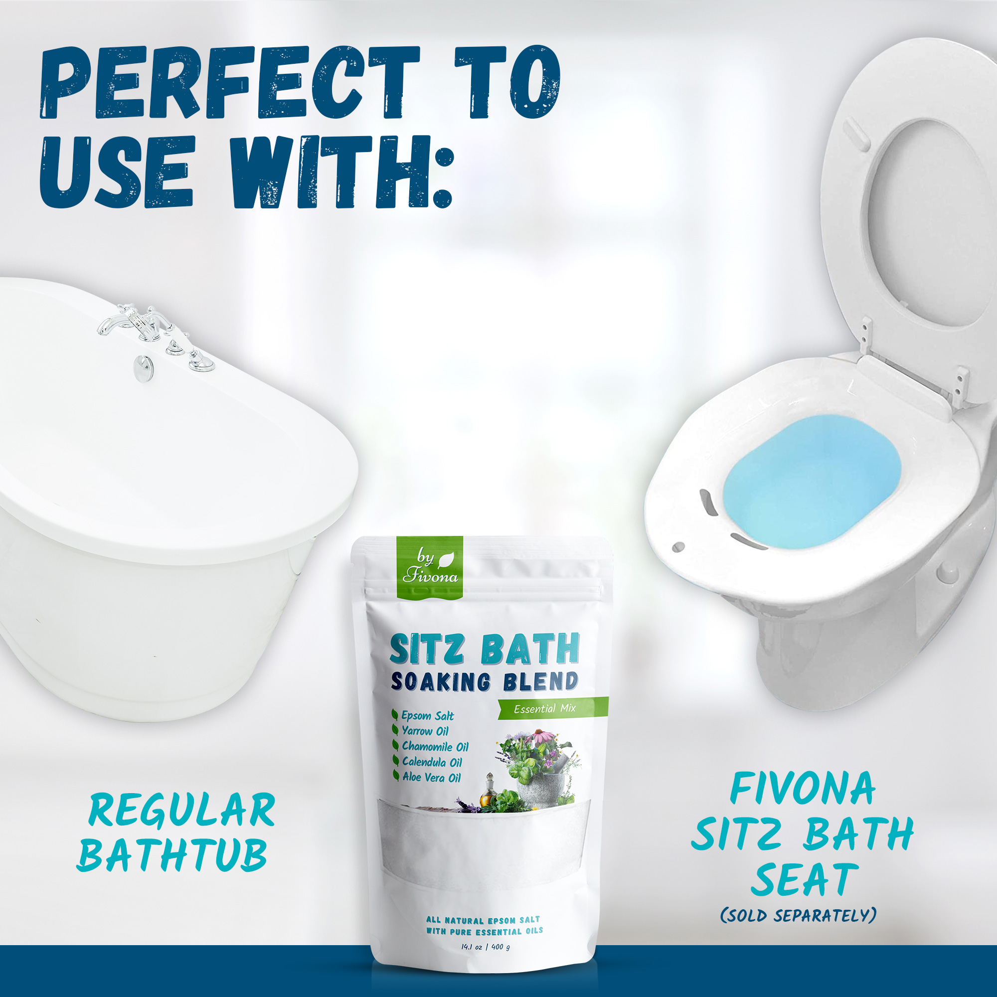 When used in combination with the Fivona sitz bath seat, our blend is ideal to use as an aid for: Postpartum care, Hemorrhoids treatments, Anal fissures, Yeast infections, Piles, Episiotomy stitches bruising relief