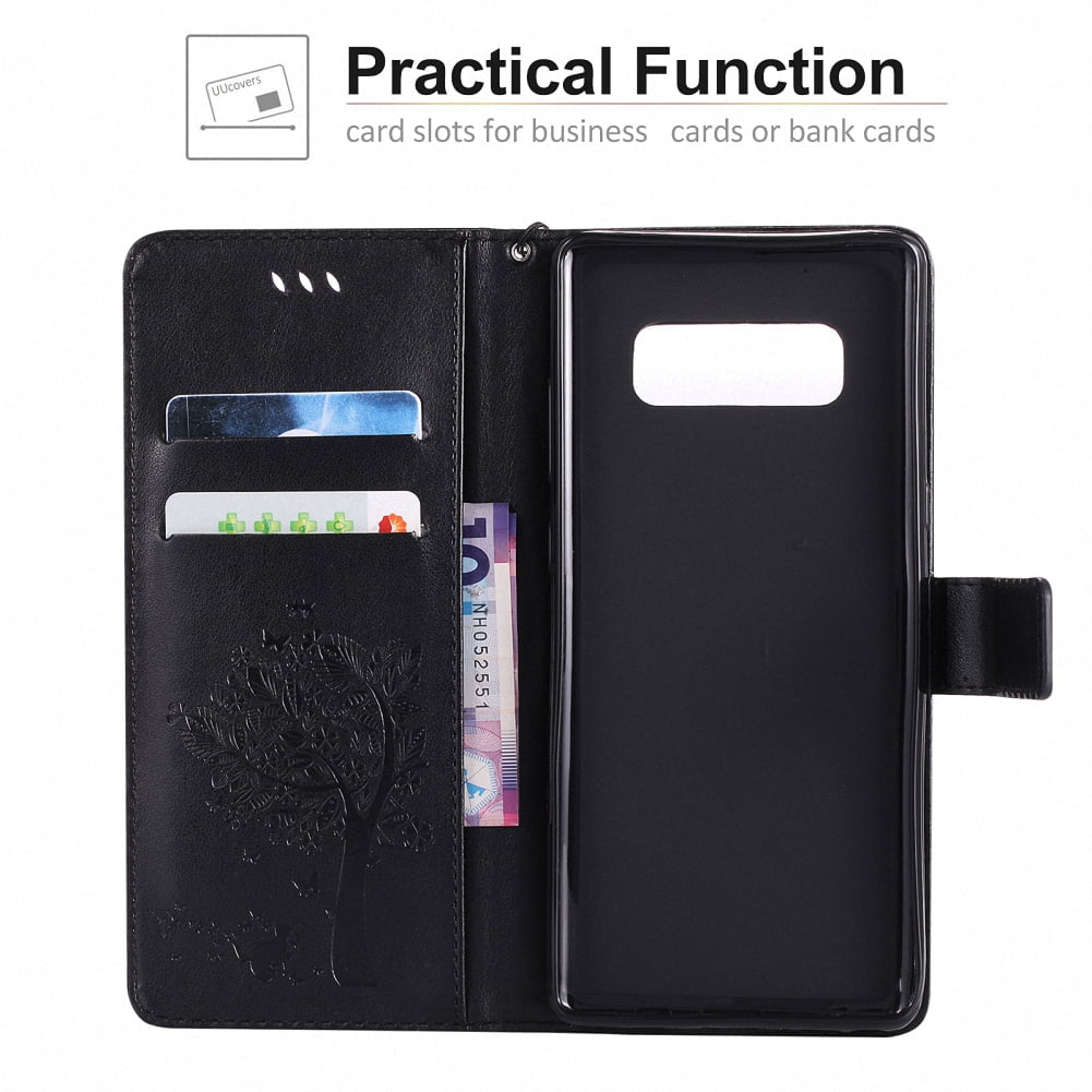 Galaxy Note 8 Case, Galaxy Note 8 Wallet Case, Allytech Ultra Thin PU Leather Full Body Protective Case Embossed Cat & Tree Folio Flip Stand Cover for Samsung Galaxy Note 8 G9500 Phone, Black
