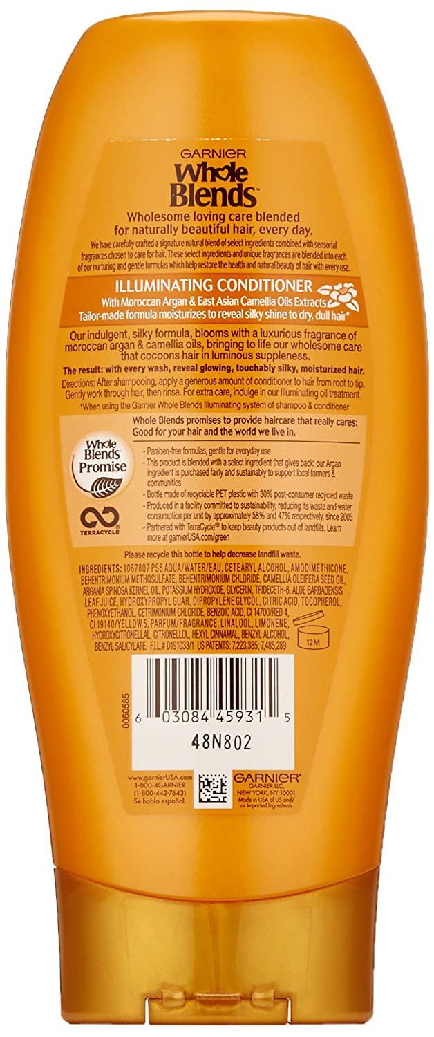 - Garnier Whole Blends Illuminating Conditioner brings to life our wholesome care that cocoons hair in luminous suppleness
