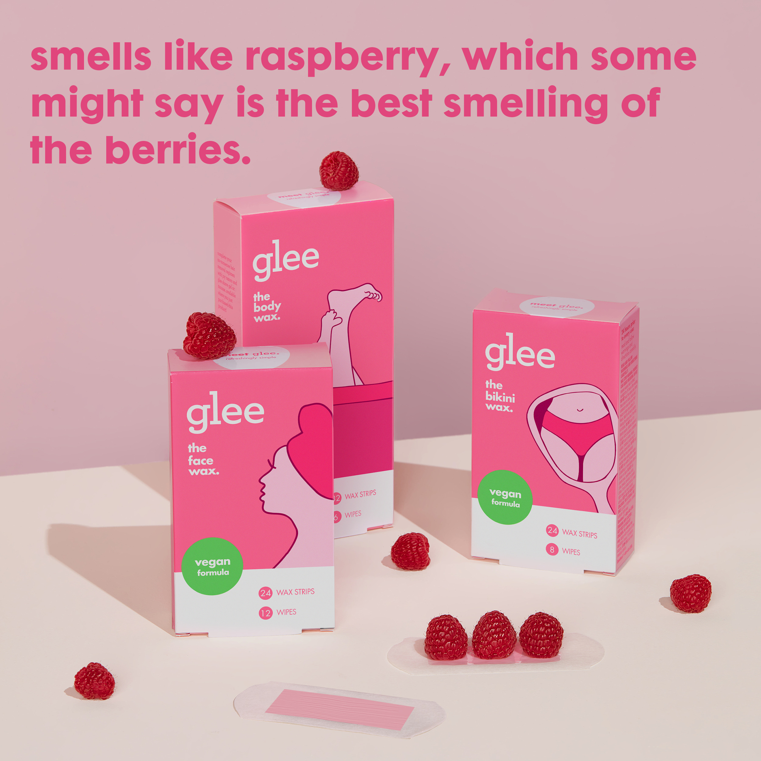 you’ve got more important things to do than worry about hair, so we made our glee vegan formula face wax for women with busy lives. these raspberry-scented, ready to go jelly wax strips remove hair to keep you smooth for up to 4 weeks. which is just another way of saying you will smell like delicious fruit and won’t have to wax again for a really long time, which is pretty great if you ask us. Dermatologist tested (and dermatologists are great at tests) sensitive formula bikini wax for women so our sensitive sisters can get their smooth on. made with a vegan, animal test-free formula, because honestly, why wouldn’t your hair removal be vegan? this kit comes with 24 glee face wax strips and 8 dry touch finishing wipes to make clean up easy, because life is messy enough already. we take care of your body hair situation. Because your hair is more attached to you than you are to it.