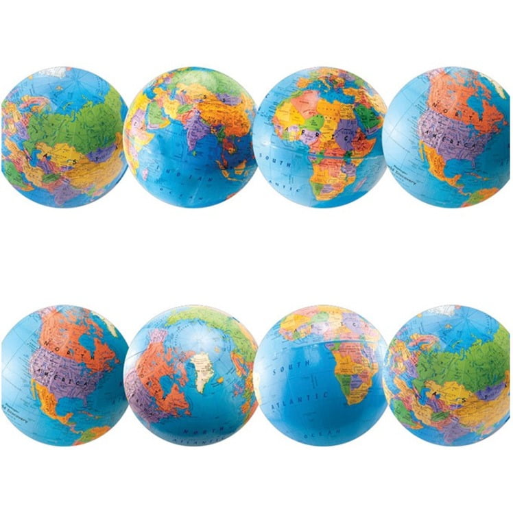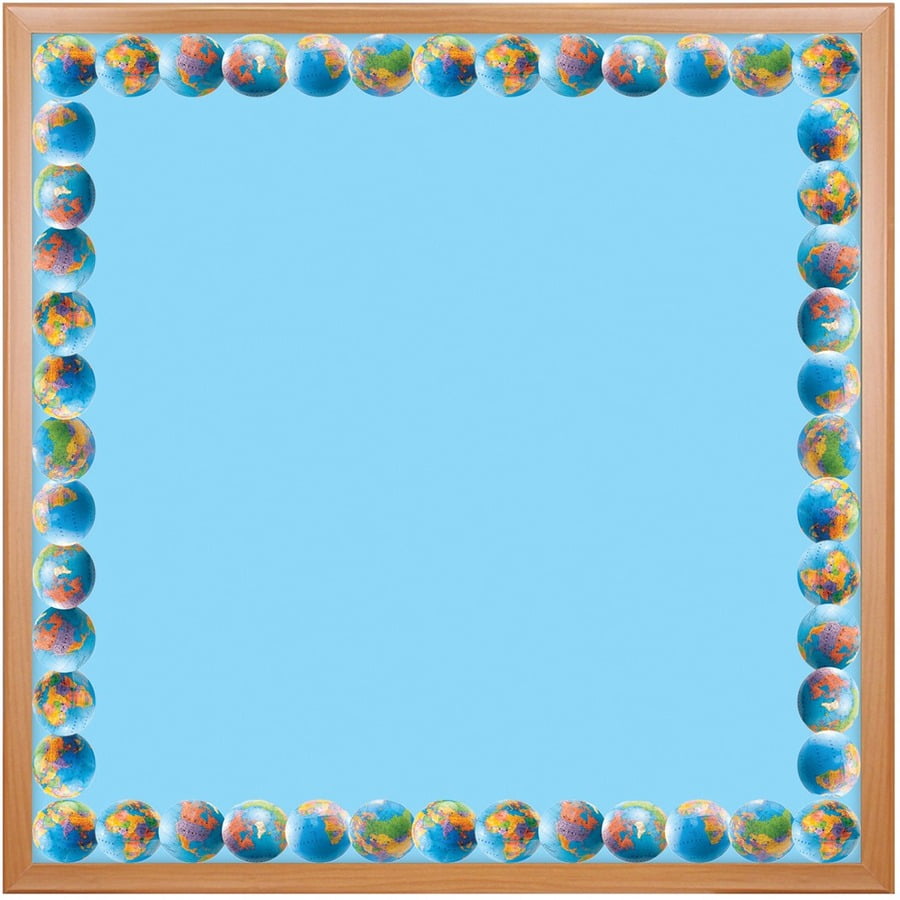Students will enjoy traveling the world with the Globes bulletin board border from Hygloss. Introduce Current Events, Social Studies, Geography, Travel, History and more with our dynamic, die cut Globe Classroom Border. With bright spheres that seem to spin and show the entire world, you can present your lessons in style. Each strip measures 3" x 36". Each pack includes 12 strips for a total of 36′ per pack.
