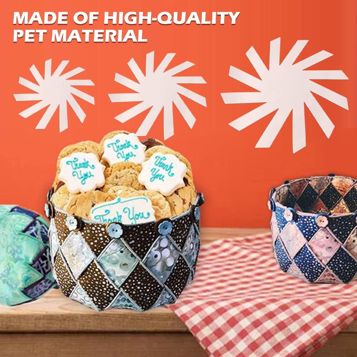 - [DIY Quilting Template] Use the DIY quilting template quilting ruler to weave a practical storage basket. The finished storage basket it can be used to hold snacks, cookies and small items, making it a beautiful and practical storage basket. The confident beginners can do it easily and can make it anytime, which is not only eco-friendly but also saves the cost of buying storage baskets. Create your own comfort with perfect consistency every time you make a woven basket.