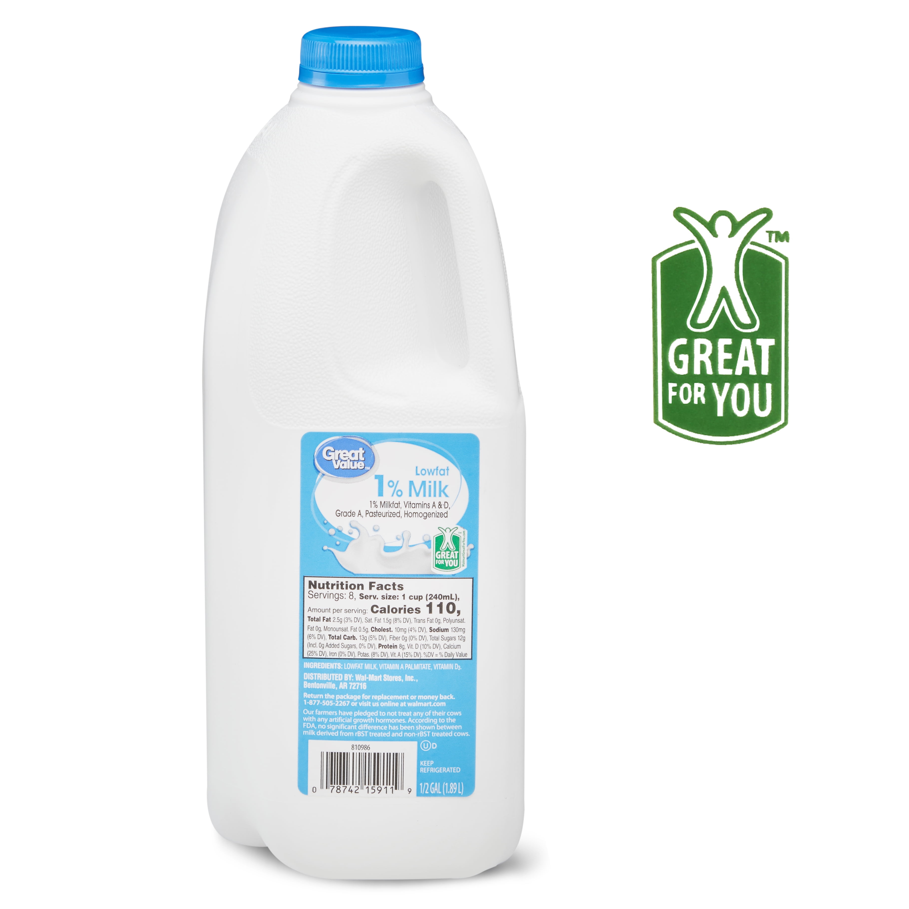 This Grade A quality milk is pasteurized and delivers fresh from the farm taste. This kitchen staple is great for using in cereal, to bake desserts and more. This gallon of milk is also wonderful for milkshakes, smoothies, chocolate milk and more. Enjoy a delicious classic and serve a cold glass of this milk with soft, chocolate chip cookies for dipping. It offers an abundance of nutritional benefits as it is a rich source of protein, calcium, potassium and vitamins A and D. It is great for health conscious individuals as it low in fat. Our farms have pledged to not treat any cows with any artificial growth hormones. Great Value products provide families with affordable, high quality grocery and household consumable options. With our wide range of product categories spanning grocery and household consumables, we offer you a variety of products for your family’s needs. Our products are conveniently available online and in Walmart stores nationwide, allowing you to stock up and save money at the same time.