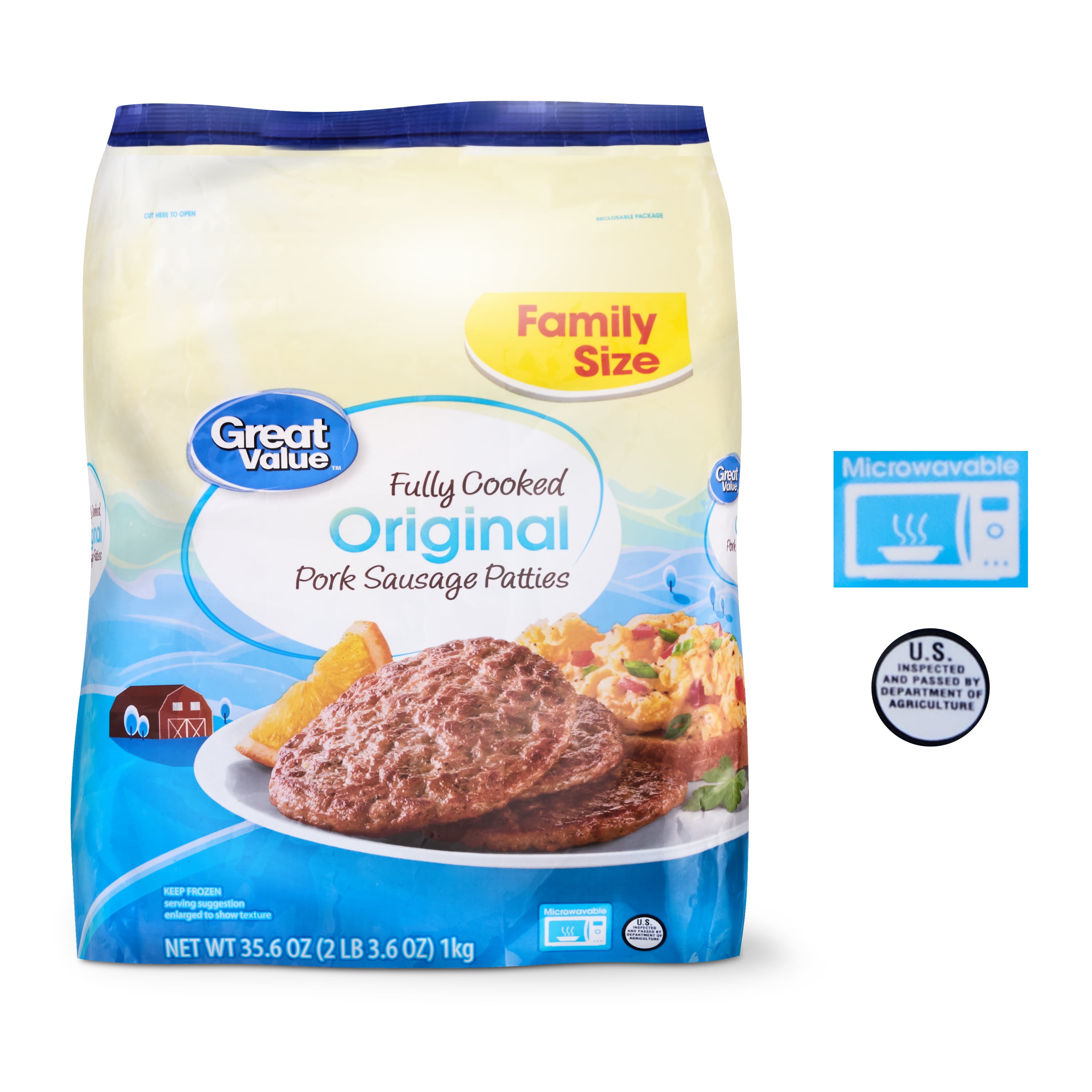 Great Value Fully Cooked Original Pork Sausage Patties Family Size, 35.6 oz