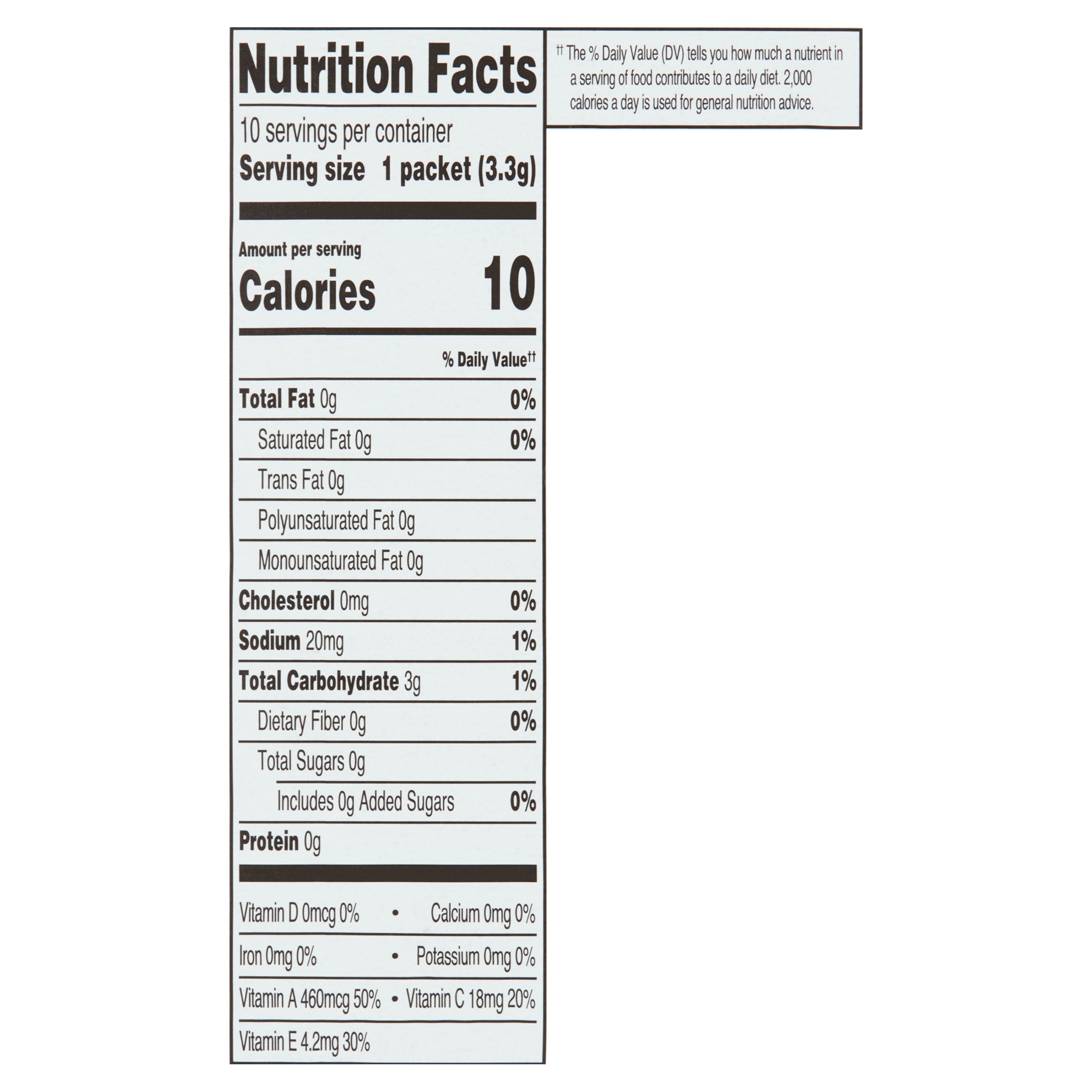 Enjoy the incredible flavor combination of cherry and pomegranate in our Great Value Antioxidant Cherry Pomegranate Drink Mix. These convenient drink mix packets make it easy to stay refreshed and hydrated with great flavor whether you’re in the office, at the gym, or on the go. With only 10 calories per serving and a sugar-free recipe, you’ll be able to indulge in the delicious blend of the tart cherry taste and sweet pomegranate flavor completely guilt free. Plus, our drink mix is also an excellent source of antioxidants and vitamins A, C, and E, making it a great beverage option for health conscious individuals. Simply add this drink mix to 16-fluid ounces of water, shake your drink well until it dissolves, and "voila!", your beverage will be ready to drink. Quench your thirst with the revitalizing taste of our Great Value Antioxidant Cherry Pomegranate Drink Mix.