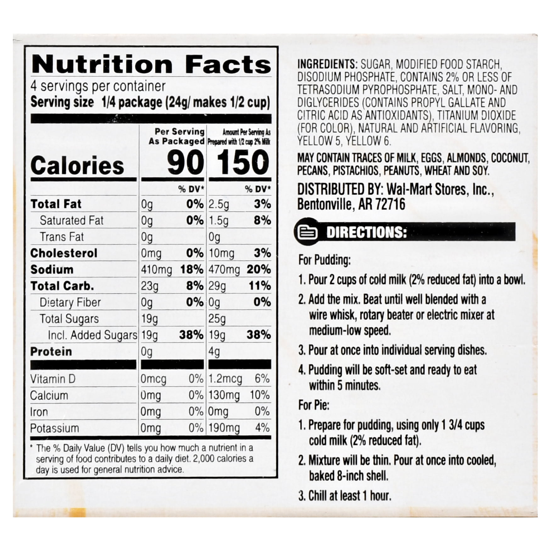 Great Value Vanilla Instant Pudding & Pie Filling, 3.4 oz