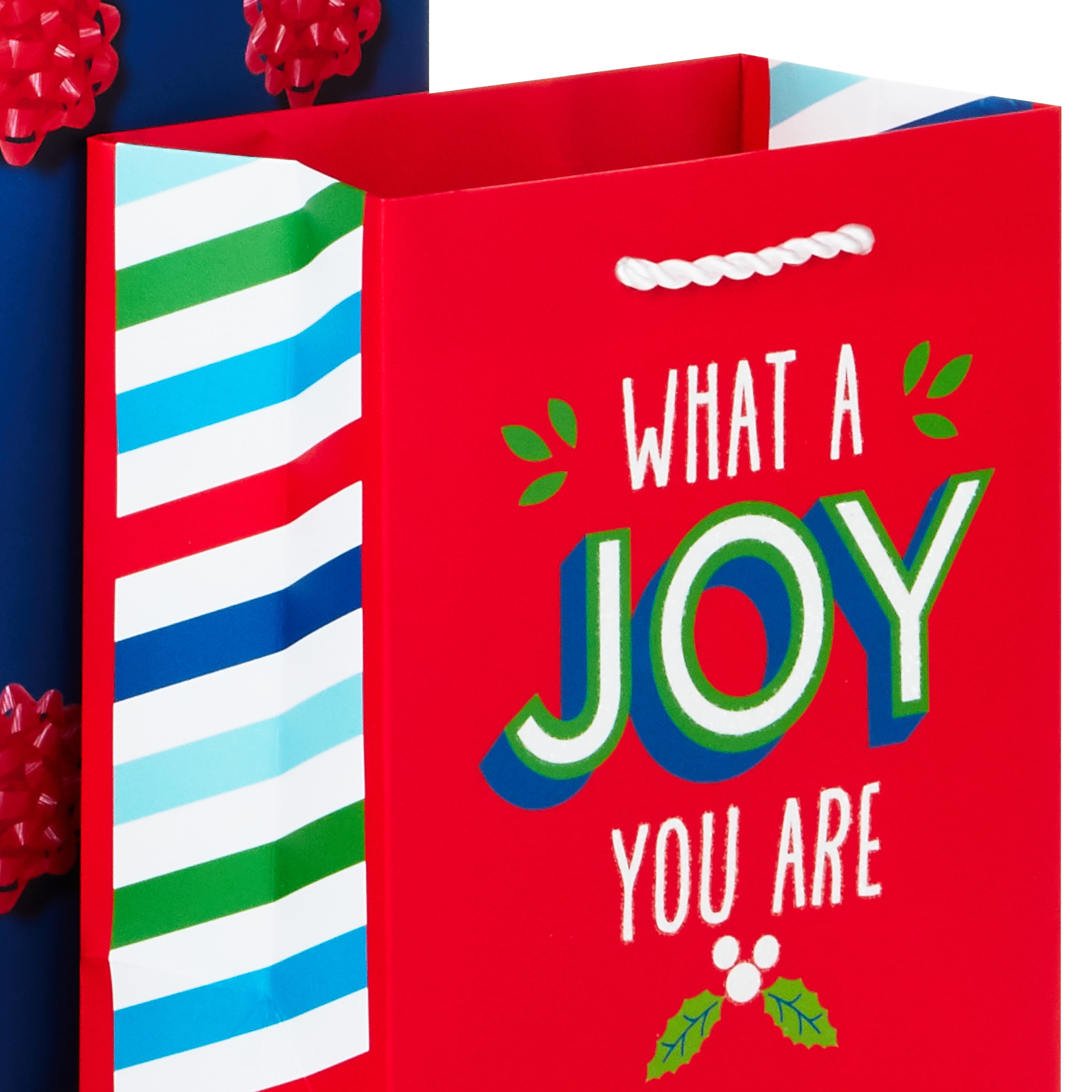 Hallmark Celebrate Christmas with family, friends and all the people on your nice list with this colorful collection of small, medium and large gift bags. Pack of nine assorted Christmas gift bags feature merry messages or festive designs perfect for kids and adults. Small bags include a touch of sparkle with glitter accents. Hallmark has been your family-owned creator of greeting cards, Christmas ornaments, gifts, wrapping paper and more for over 100 years. We take deep pride in helping individuals connect in just the right way.