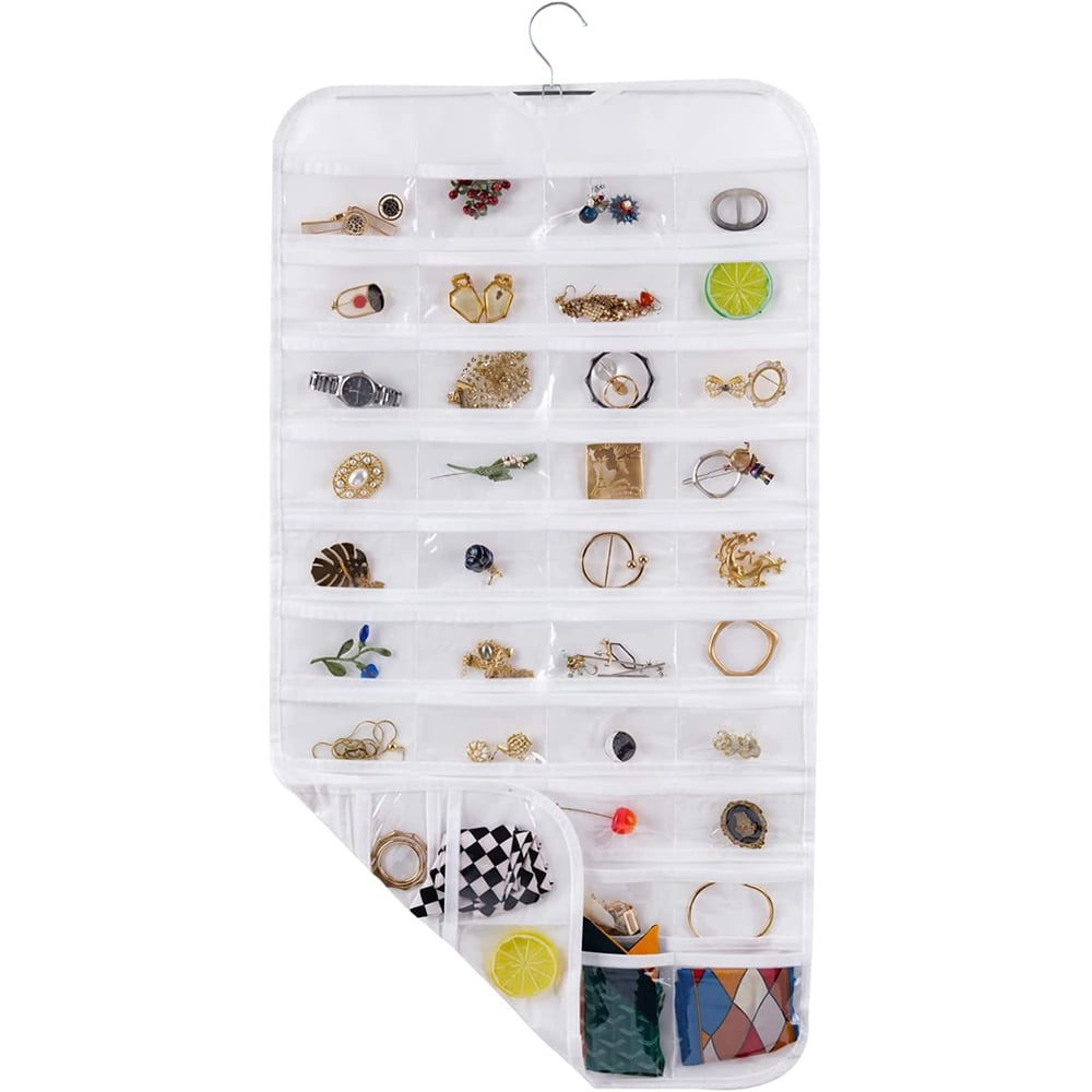 Hanging Jewelry Organizer, Double Sided 80 Pocket Jewelry Hanging Storage Bag, White