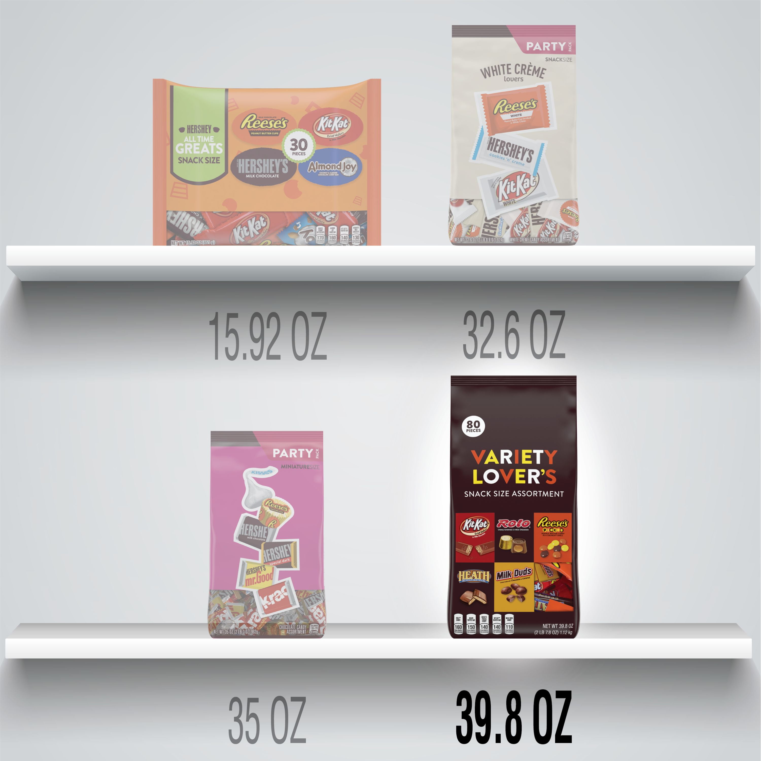 Hershey, Chocolate and Peanut Butter Assortment Snack Size Candy, Bulk Candy, 39.8 oz, Variety Bag, 80 Pieces