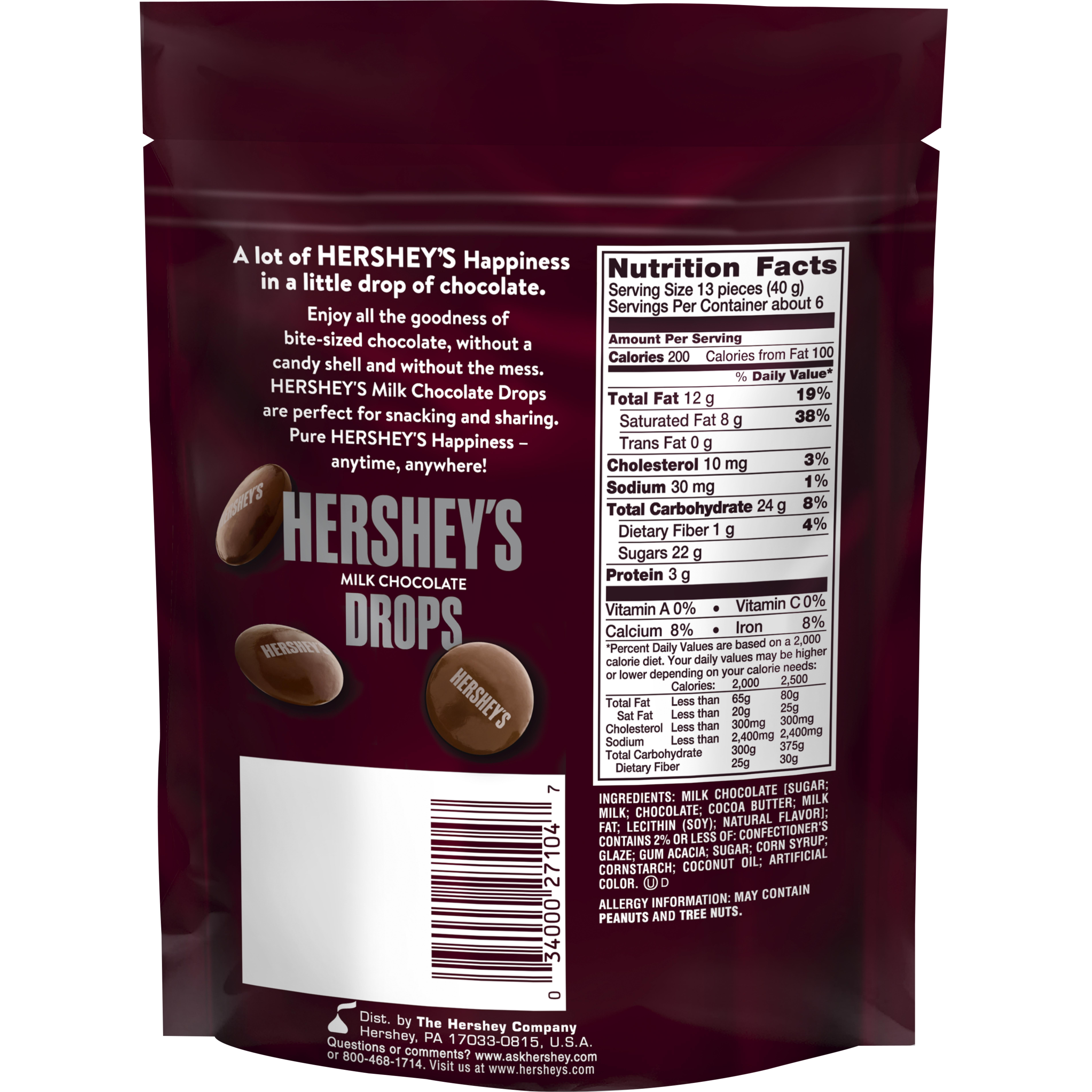 Happiness is at hand when you grab a handful of rich and creamy HERSHEY’S Milk Chocolate Drops! No candy shell, just sheer HERSHEY’S Chocolate goodness. The re-sealable bag lets you enjoy these bite-size chocolates any time you want a sweet treat at home, work, school, or the movies!HERSHEY’S Milk Chocolate Drops, 8 Ounces:Bite-size drops of genuine chocolate happinessPerfect for snacking and movie watchingMilk chocolate candy drops Kosher chocolate in re-sealable pouches