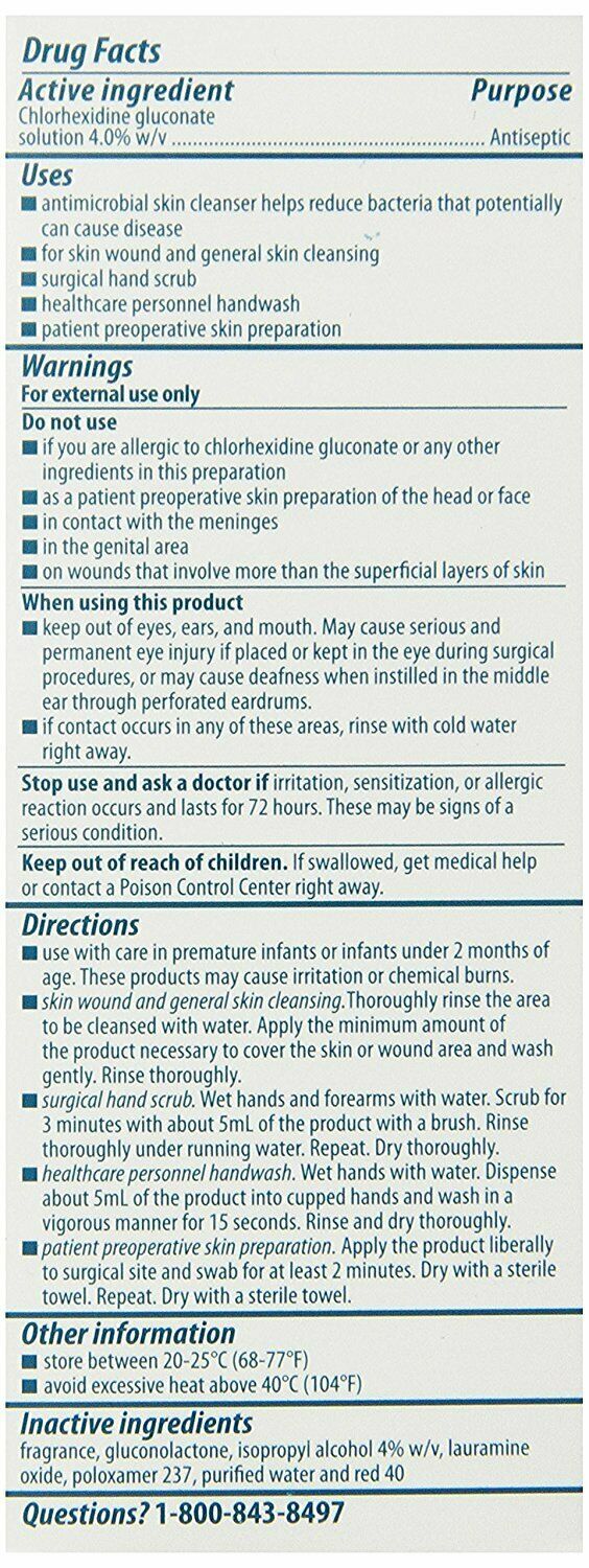 Hibiclens is a liquid antimicrobial skin soap that bonds to the skin and provides up to 6 hours of continuous killing action. Hibiclens is proven to kill many harmful bacteria, viruses, and fungi. Washing with Hibiclens before contact with contaminated skin and surfaces will help eliminate the risk of transfer. Hibiclens is a medical-grade liquid antimicrobial cleanser, proven to kill many harmful bacteria including MRSA, viruses, and fungi. Washing with Hibiclens before contact with contaminated skin and surfaces will help eliminate the risk of transfer. Add Hibiclens to your first aid kit, car kit, diaper bag, or purse for all those times you need to clean hands but can’t get to a sink. Whether you’re attending school or camp, competing in athletic events, or shopping for groceries, you can use Hibiclens in those situations which enable the spread of bacteria and viruses but leave you without a convenient way to wash your hands. Gentle enough for daily use to protect against germs and flu. Rinse and dry thoroughly. Laundering/Cleaning Instructions: Chlorhexidine Gluconate skin cleaners will cause stains if used with chlorinated products. Rinse completely and use only non-chlorine detergents. Warnings: For external use only. Do not use: if you are allergic to chlorhexidine gluconate or any other ingredients in this preparation; as a patient preoperative skin preparation of the head or face; in contact with the meninges; in the genital area; on wounds that involve more than the superficial layers of skin.