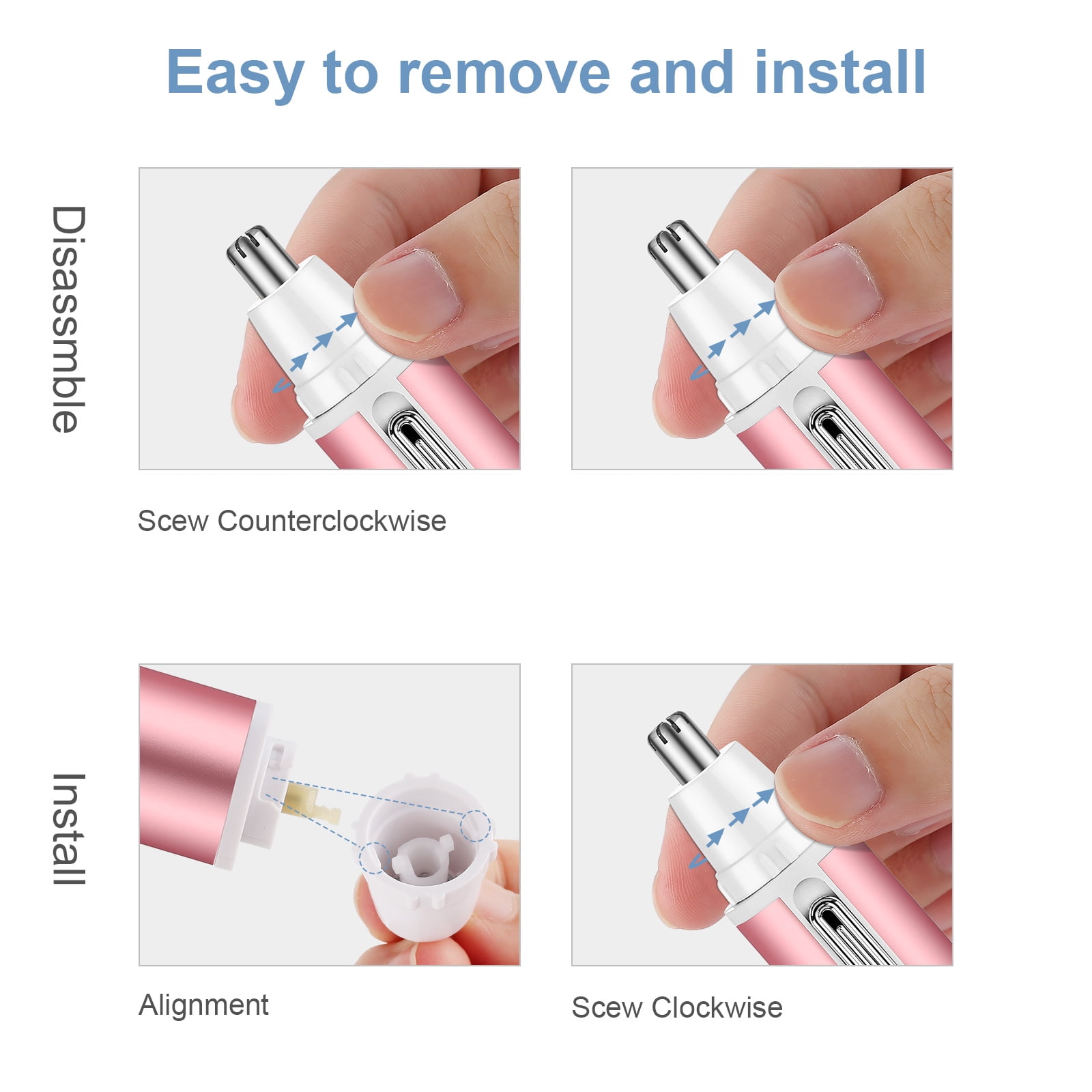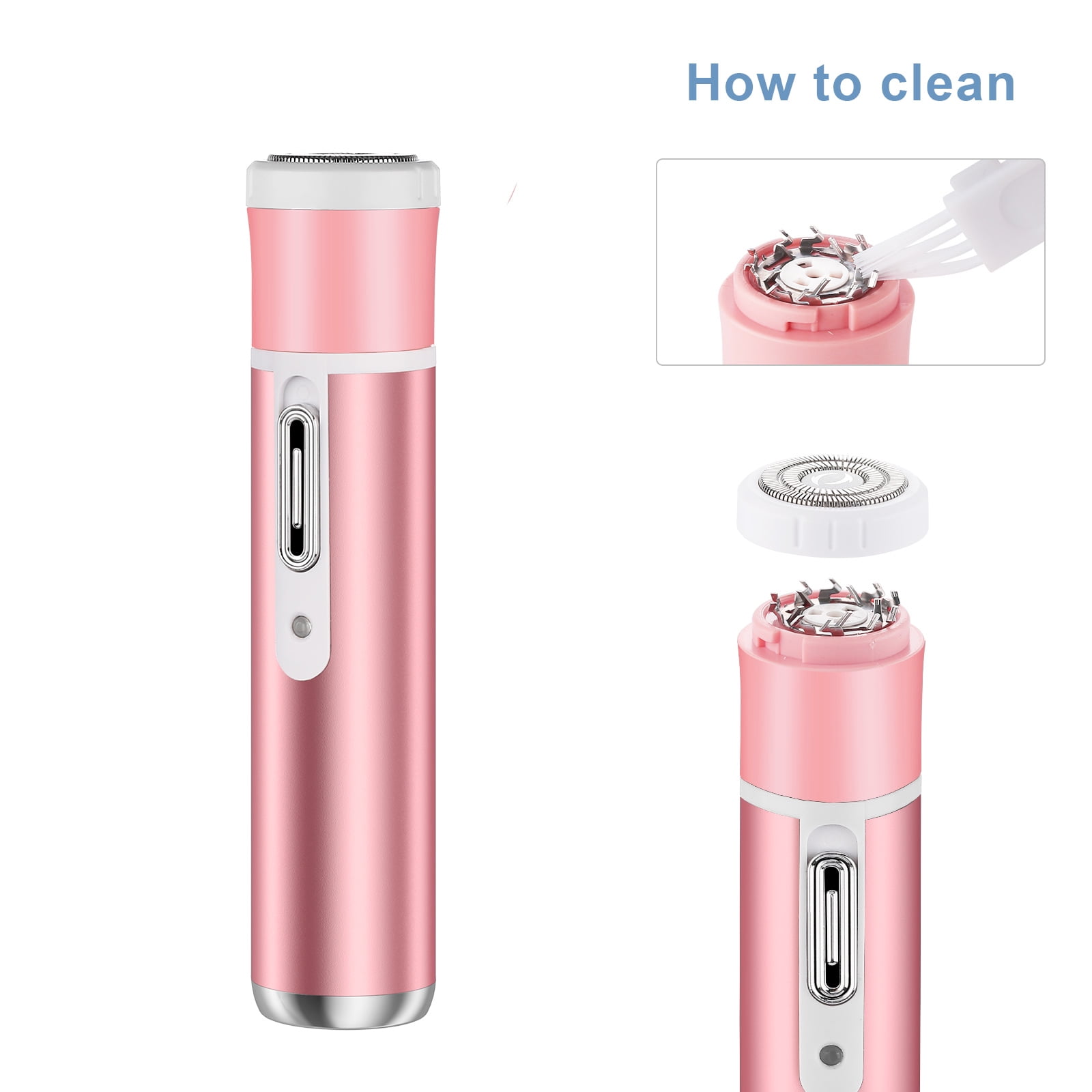 - [Waterproof & Easy to Clean]- This unisex electric shaver for men and women comes with 4 different trimmer heads, heads is washable, waterproof, but not rinsing the main body in water. When you finish hair remove, you can twist and take off conveniently the blade for cleaning and maintenance.