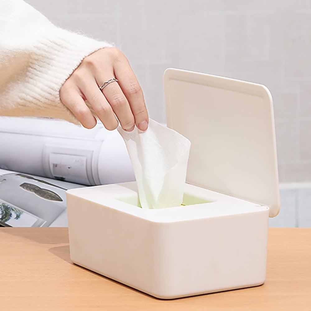 (1) The opening of the wipes box is large, and the seal design with the lid is not easy to drop dust and wet wipes! Easy to use even with soft wipes
