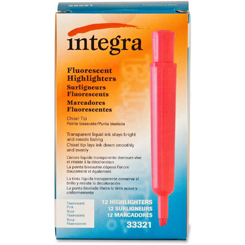 Integra Chisel Desk Liquid Highlighters Chisel Marker Point Style – Fluorescent Pink – 12 / Dozen