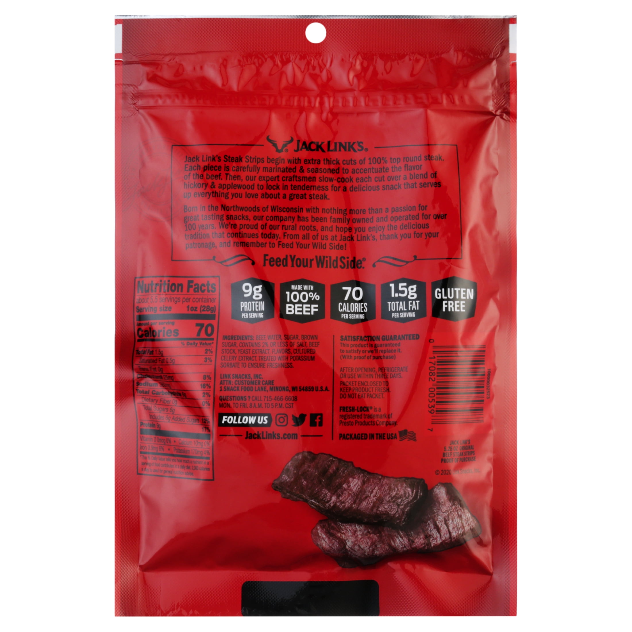 - GOOD SOURCE OF PROTEIN: with 9g of protein and 70 calories per serving, Jack Link’s original steak strips are a must-have meat snack to have on hand to help you power thru your day!