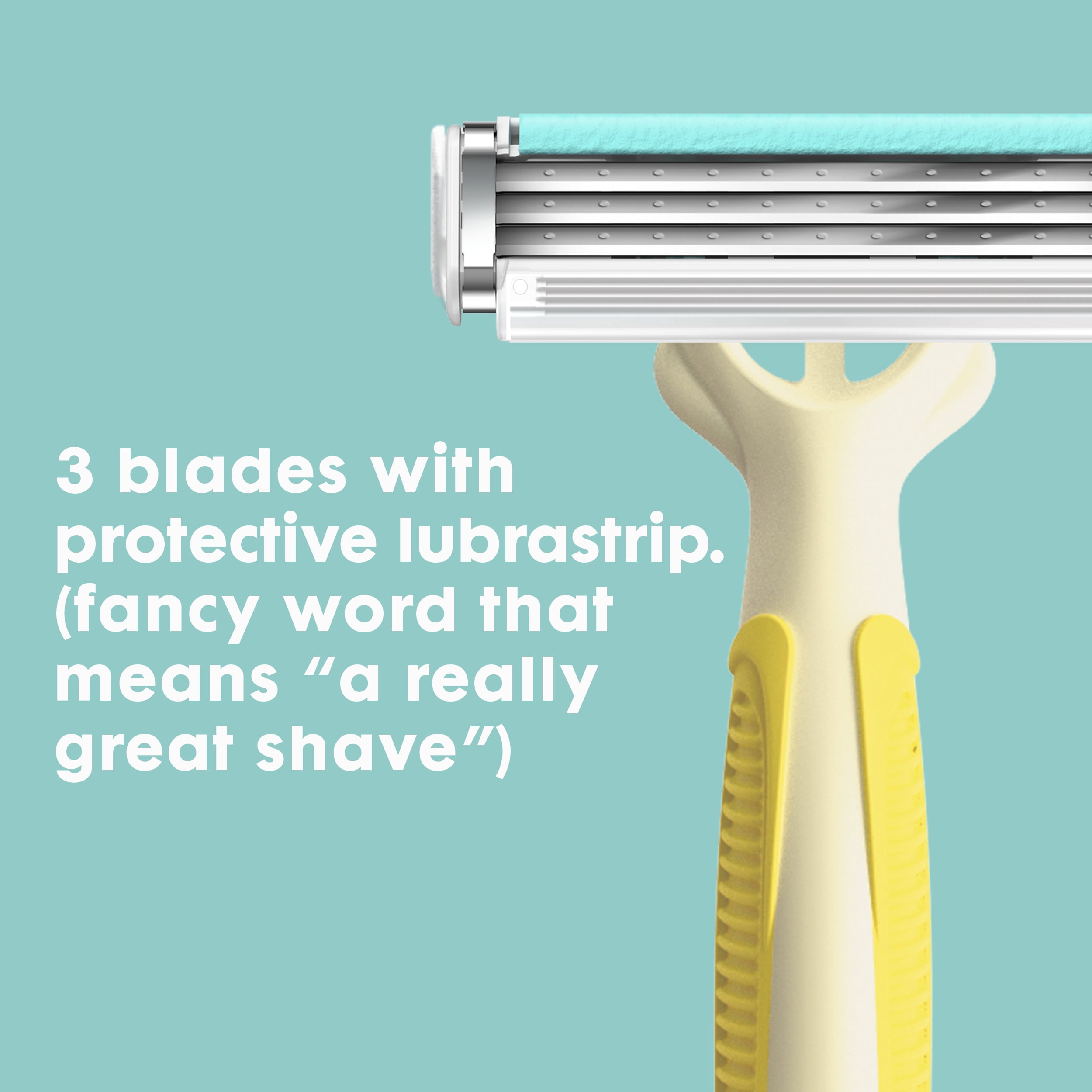 Who says every shave has to be the same? Having to shave is a chore no matter how you slice it. But getting the right razors can make all the difference. That’s why we’re bringing it back to the basics with razor blades so adorably smooth, now shaving isn’t such a task. With four fun disposable razors, we’ve got you covered – just not in hair. Each one has 3 razor blades and a lubricating strip for the comfiest shaving razor a girl could ask for. Plus, these razors come in two different colors, so you can take your bathroom from dorm-room-dull to hotel-level-lovely. Not to mention these cutting-edge (literally) razors for women come in a resealable bag, so you don’t have to leave a bunch of blades around your sink or shower floor. So while your daily shave might feel like routine body maintenance, you can at least find extra joy in our colorfully cute disposable razors – so you can get back to the best things in life. Like tacos.