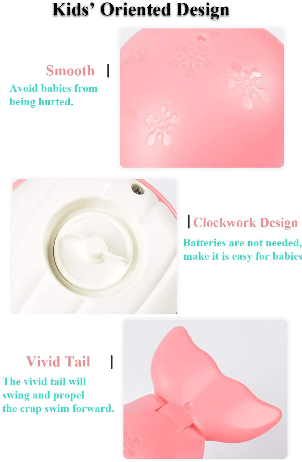 - A Master of Swimming: Just power up the propeller by winding up the motor, and then the little narwhal moves forward in the bathtub. It is easy to play it, toddlers can play it indepedently.