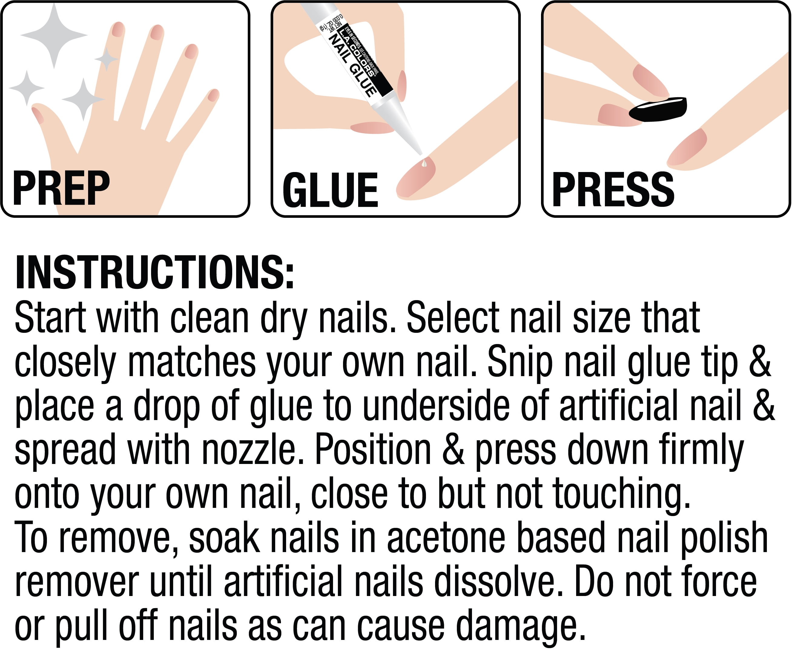 L.A. COLORS GEL ON Nail Kit has everything you need for a trendy, flawless set of nails. Skip the salon and damaging acrylic nails for these easy to apply, ready-to-wear nails. Each kit includes a 12 nail tips in varying sizes and a nail glue for a fast and easy application. To apply: prep natural nails, add glue, and press on artificial nails. To remove: soak nails in an acetone-based nail polish remover until artificial nails dissolve.