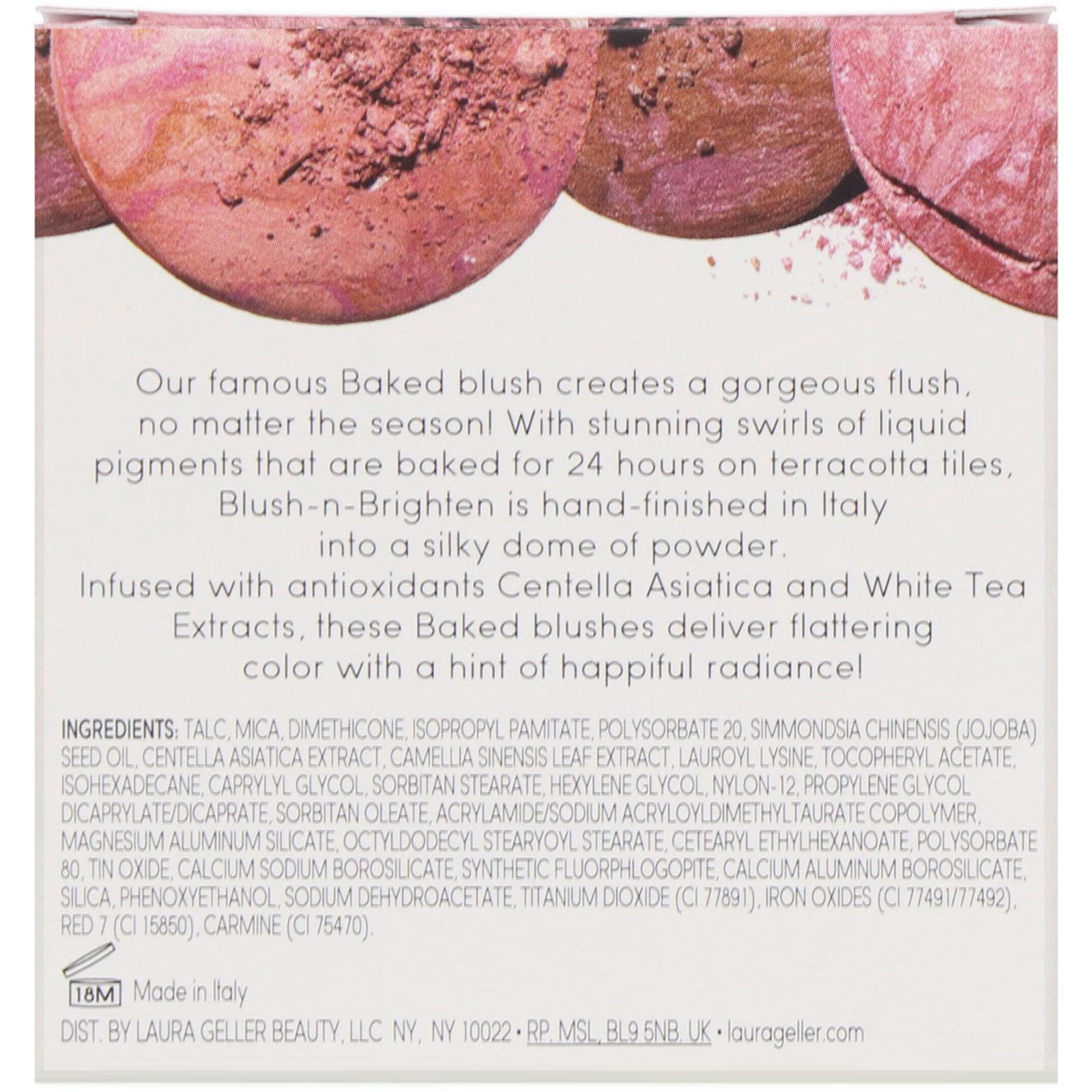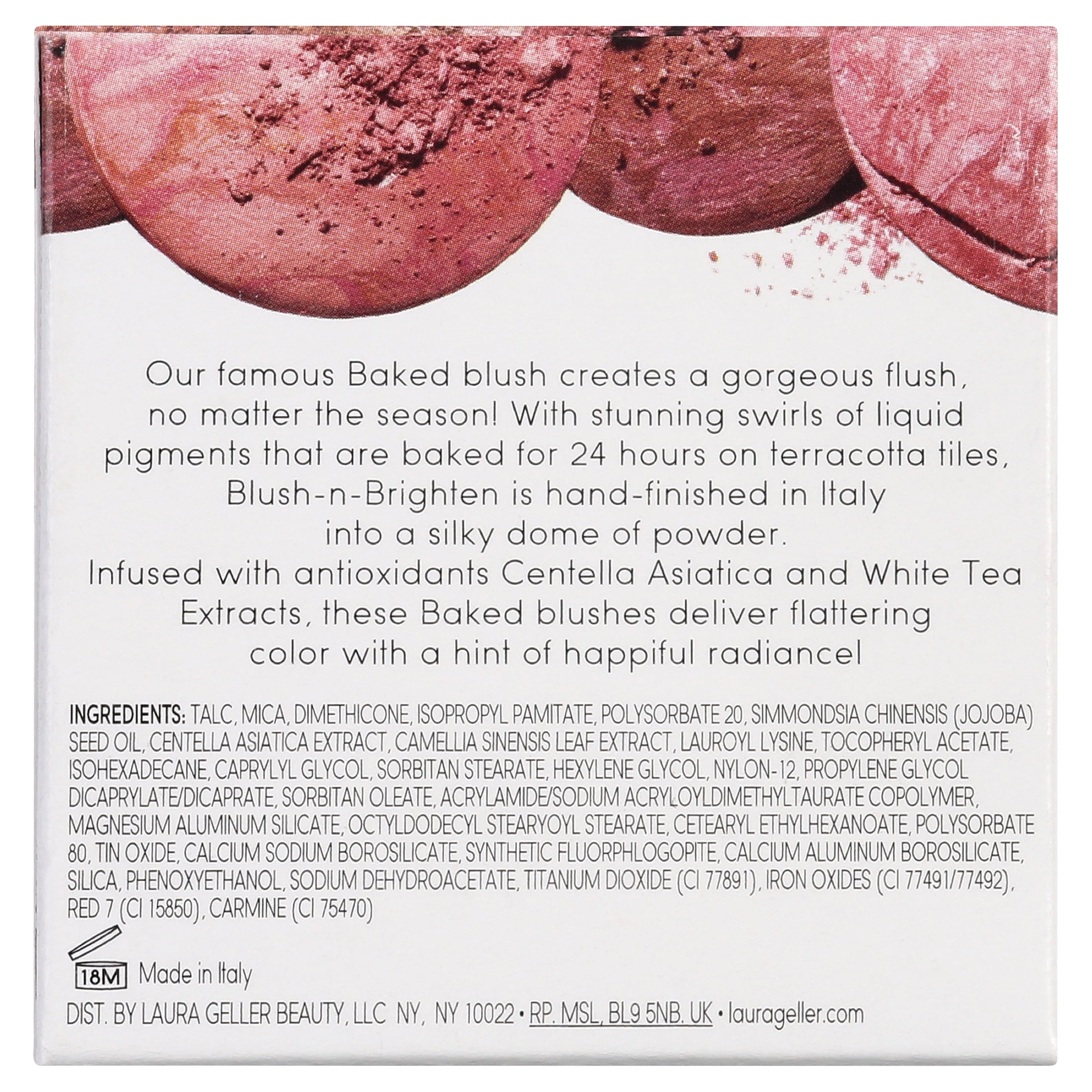 Create a gorgeous flush, no matter the season with Baked Blush-n-Brighten! Swirls of multicolored liquid pigments are baked on terracotta tiles for 24 hours, then hand-finished by Italian artisans into a luxurious, silky powder. This brightening blush gives your cheeks a naturally pretty color lasts all day long. Using a blush brush, swipe it on the apples of the cheeks to create depth, dimension, and radiance to the skin. Paraben-free, with skin-loving antioxidants Centella Asiatica and White Tea Extracts.