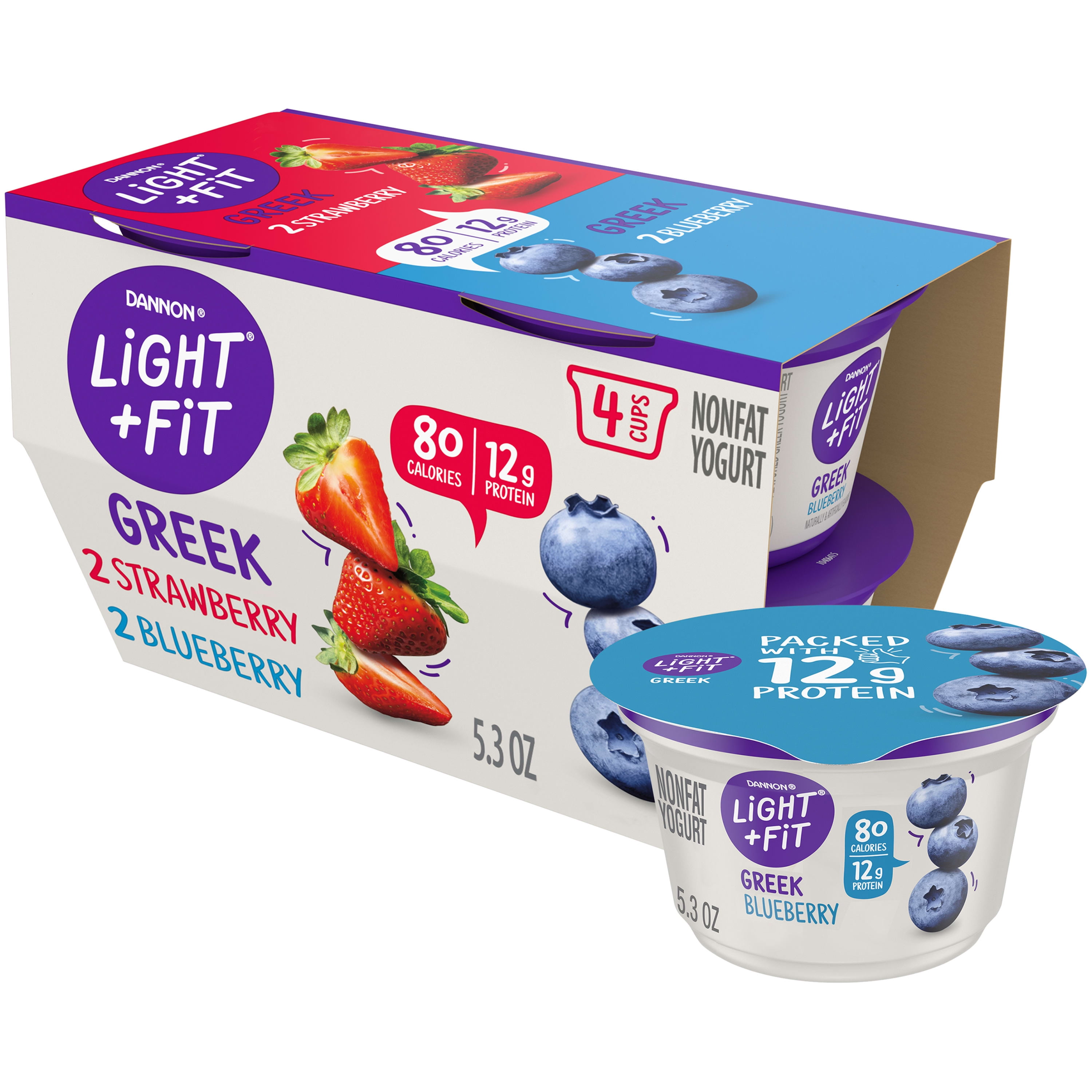 Light + Fit Strawberry/Blueberry Variety Pack Greek Yogurt, 5.3 Oz. Cups, 4 Count: