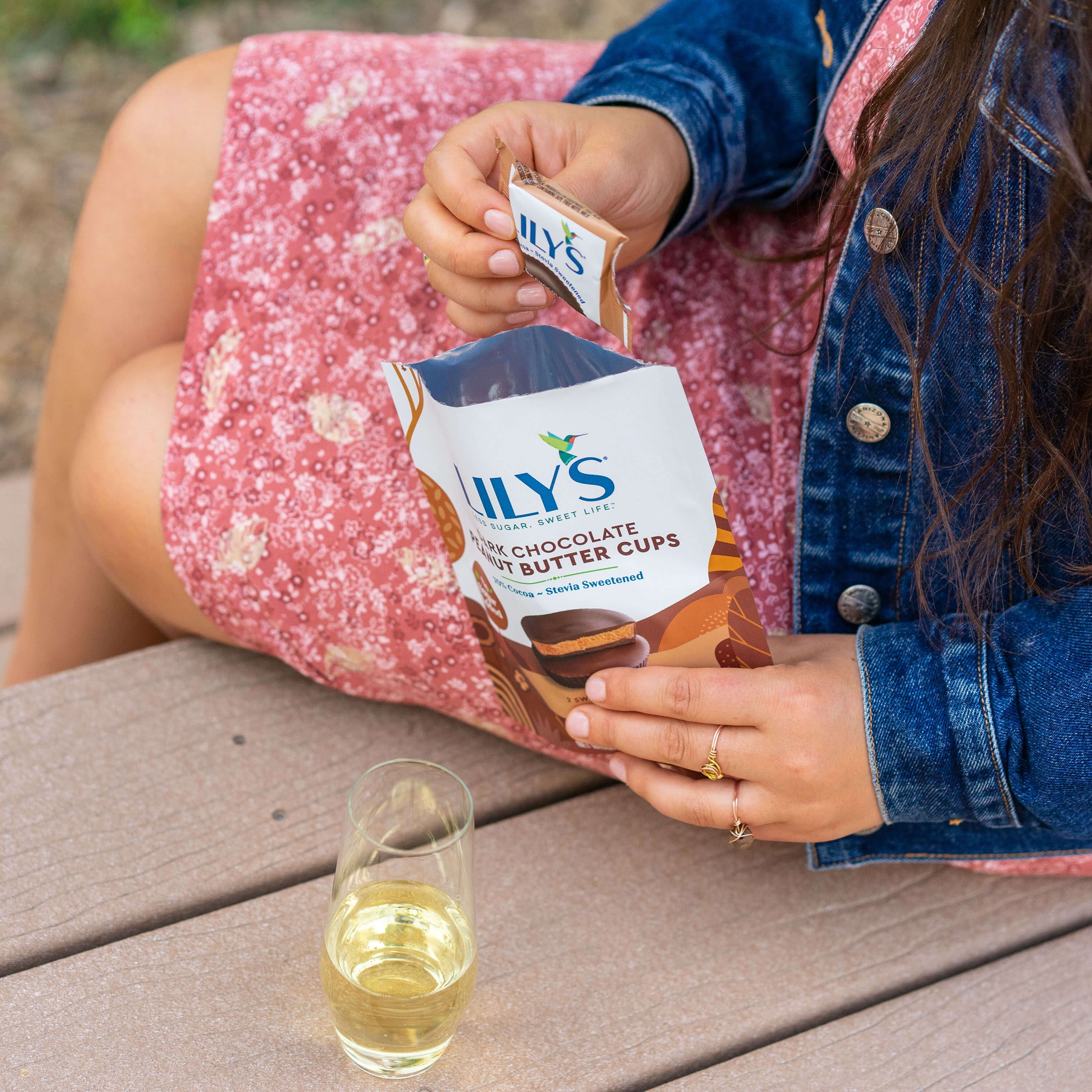One taste of these Dark Chocolate Peanut Butter Cups and you’ll think you’ve just won the flavor lottery! Sit back and enjoy these creamy, chocolatey little cups with just the right ratio of peanut butter to dark chocolate goodness. Less Sugar. Sweet Life. Lily’s Sweets delivers delicious, no-sugar-added chocolate and confections that people obsess over. Founded by natural products industry trailblazer, Cynthia Tice, Lily’s Sweets was created on the belief that people can eat better without giving up sweets. Today, Lily’s Sweets remains committed to created offerings that help you achieve overall balance by satisfying cravings in a better way.