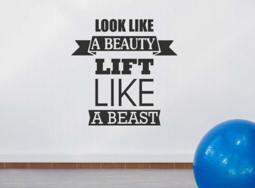 Look Like a Beauty Lift Like a Beast Sports Team Sticker Calligraphy Wall Decal Art Decor Motivational Inspirational Wall Sticker Decorative lettering workout gym weights yoga inspired