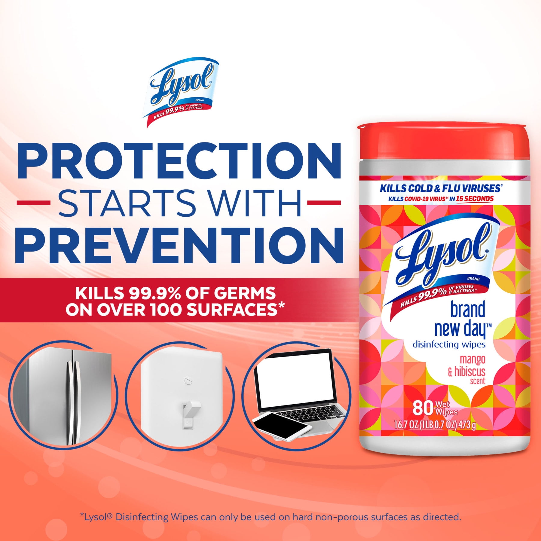 Lysol Disinfectant Wipes, Multi-Surface Antibacterial Cleaning Wipes, For Disinfecting and Cleaning, Brand New Day Mango & Hibiscus 80ct