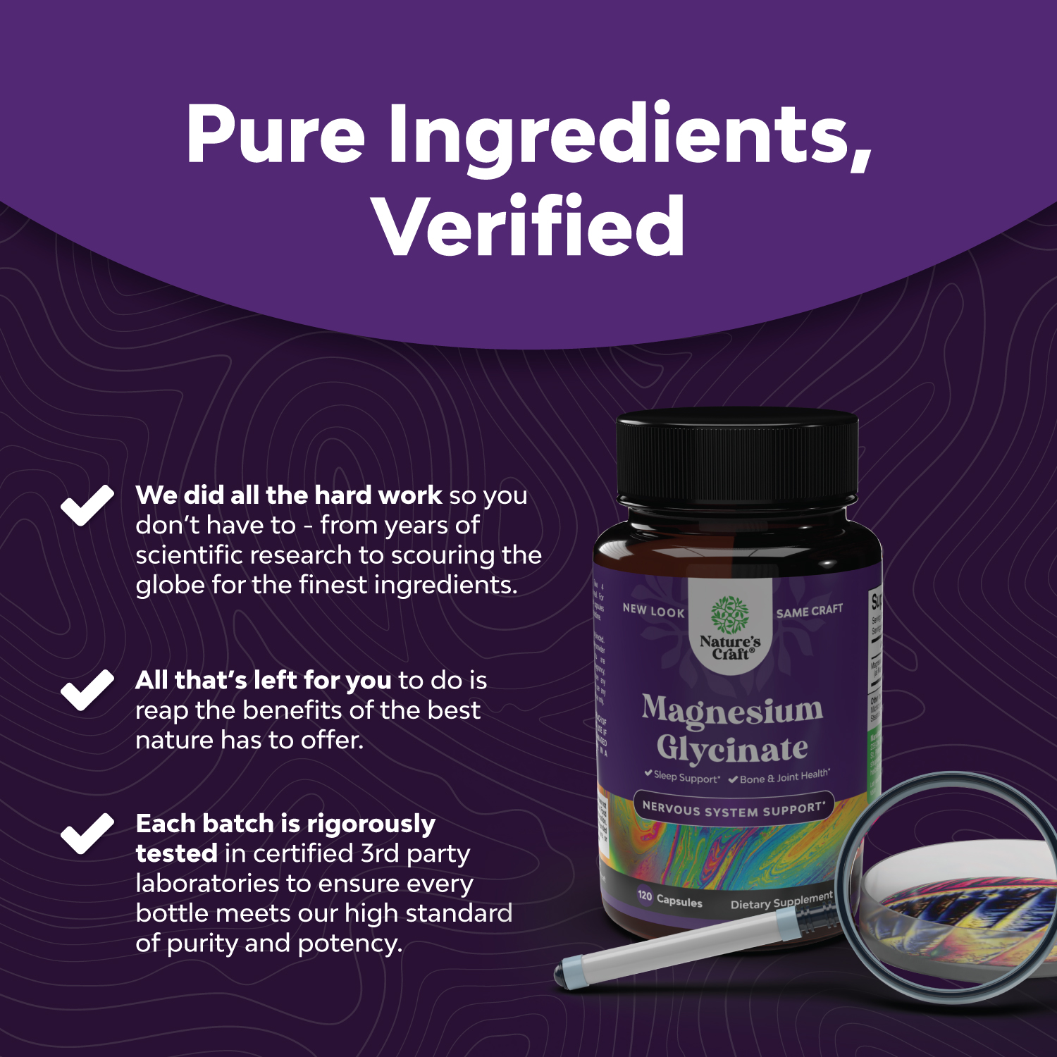 Magnesium Glycinate Mineral Supplement – Calming Magnesium Supplement for Women and Mens Natural Immune Support Bone Health Mood Support Heart Health and Muscle Recovery – 120 Count