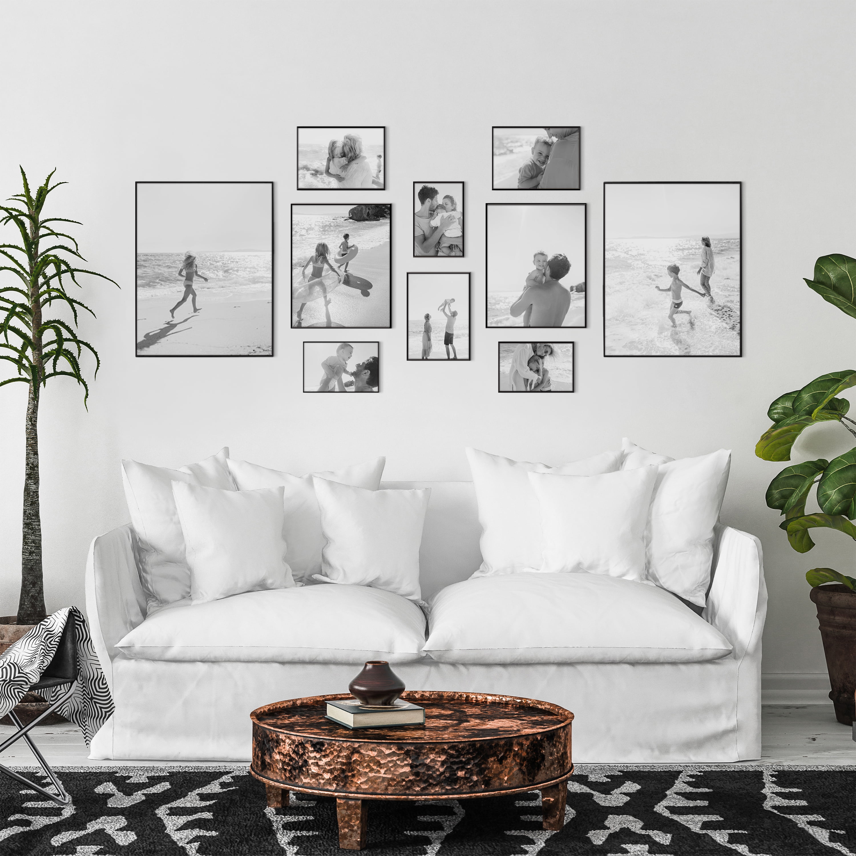 Display family pictures and more with this Mainstays Picture Frame Set. Each frame feature a black finish that goes well with most home decors. The plastic picture frames work well when displaying a large collection of photographs. They could be used to show off children’s artwork and needlework. The black picture frame set also makes an ideal solution for anyone wanting to display a large collection of photos. They can be hung vertically or horizontally to create a fun and unique display on the wall. Use this set of 10 frames together in one room or spread them throughout the house or apartment. These MCS frames come in different sizes to create an interesting grouping. The Mainstays Picture Frame Set also makes a thoughtful gift for a friend or family member to warm their new home.