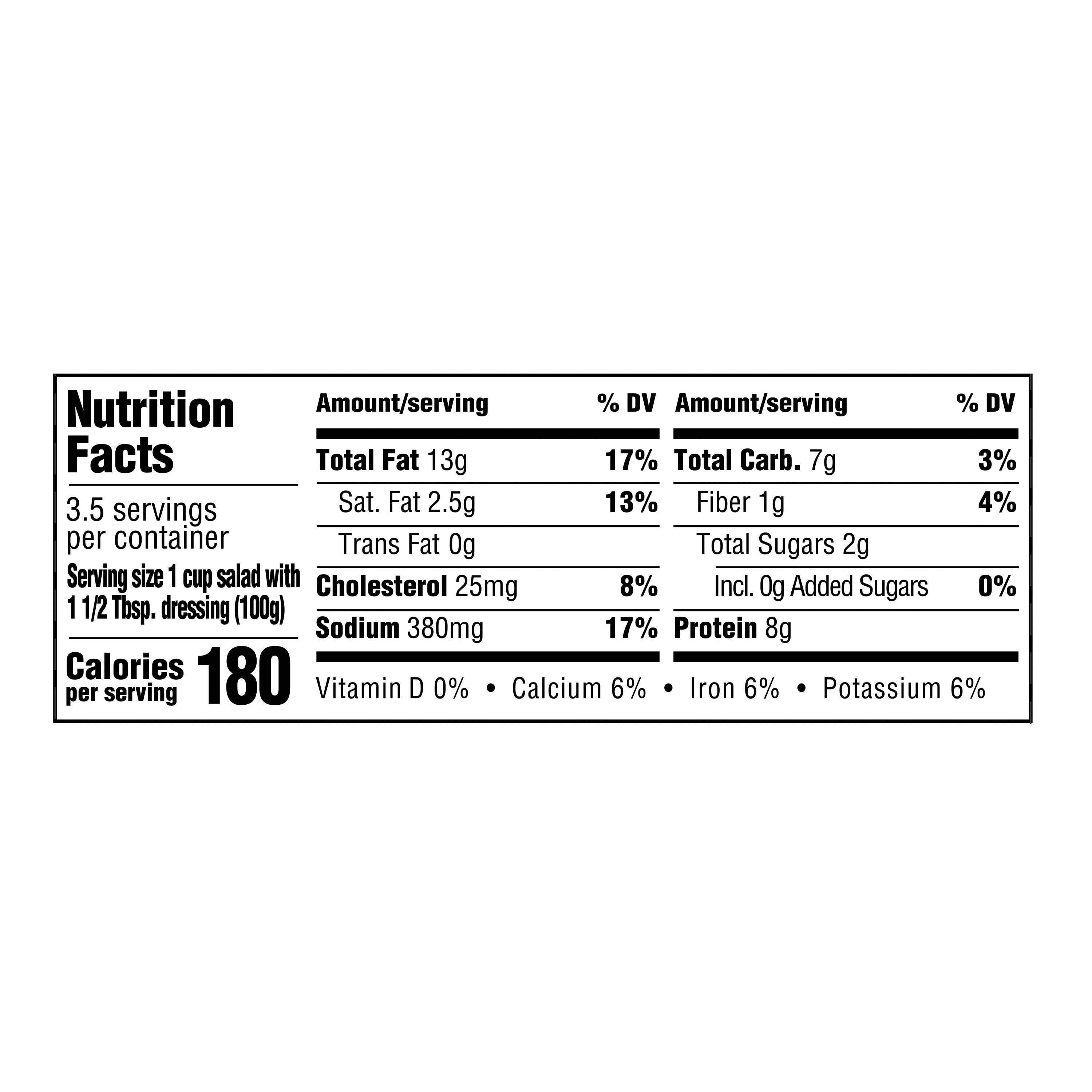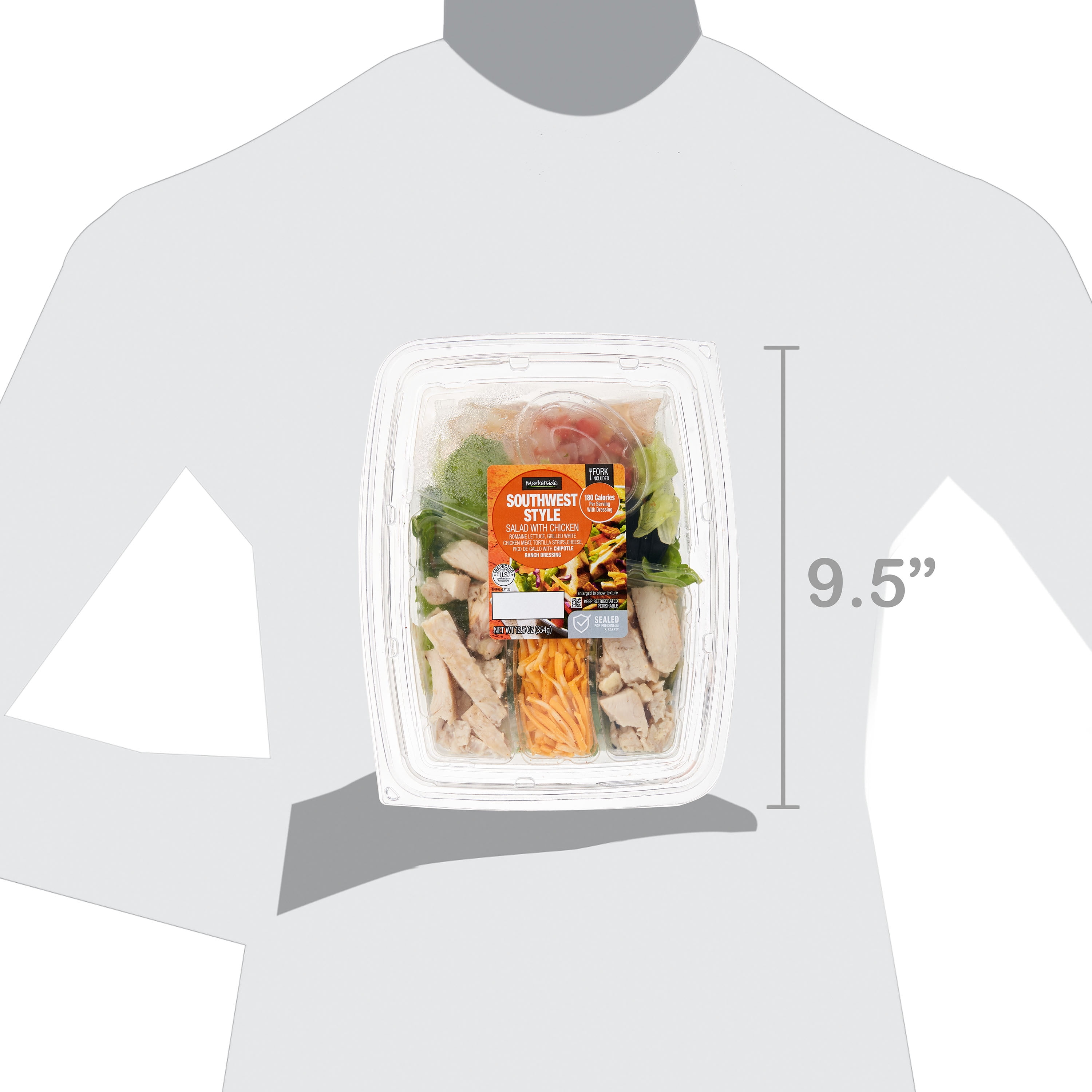 Have your lunch to-go with our Marketside Southwest Style Salad with Chicken. This ready-to-eat salad is loaded with all your salad favorites including romaine lettuce, grilled white chicken meat, tortilla strips, cheese, pico de gallo, and chipotle ranch dressing. It also offers nutritional benefits as it is a good source of protein and vitamins A and C. The Marketside Southwest Style Salad with Chicken is the perfect choice for an easy lunch and even comes packaged with a fork, so all you have to do is open and enjoy! Just serve this chef-inspired salad with a cup of chicken and tortilla soup to make it a classically delicious meal. Quick, wholesome and delicious meals are made simple with our Marketside Southwest Style Salad with Chicken.Fresh ideas and quality ingredients, that’s how Marketside brings the best foods to your table. We are committed to deliver freshness that you can taste and see. Marketside offers the best in fresh food, guaranteed by Walmart, working in partnership with farmers, bakers and chefs for the highest quality, authentic ingredients and favorite recipes.Marketside Southwest Style Salad with Chicken, 12.5 oz: