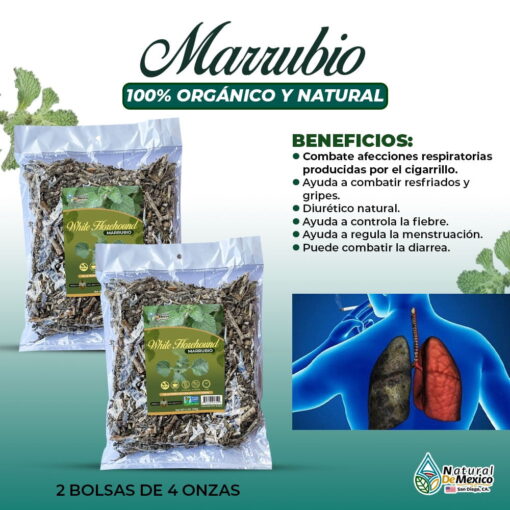 Marrubio Manrrubio 8 Oz-226gr. (2 Bolsas de 4 Oz.) Horehound Herb Tea, Bitter Herb AntiTabaco Helps, Dried Cut Leaves, Hand Harvested From Mexico