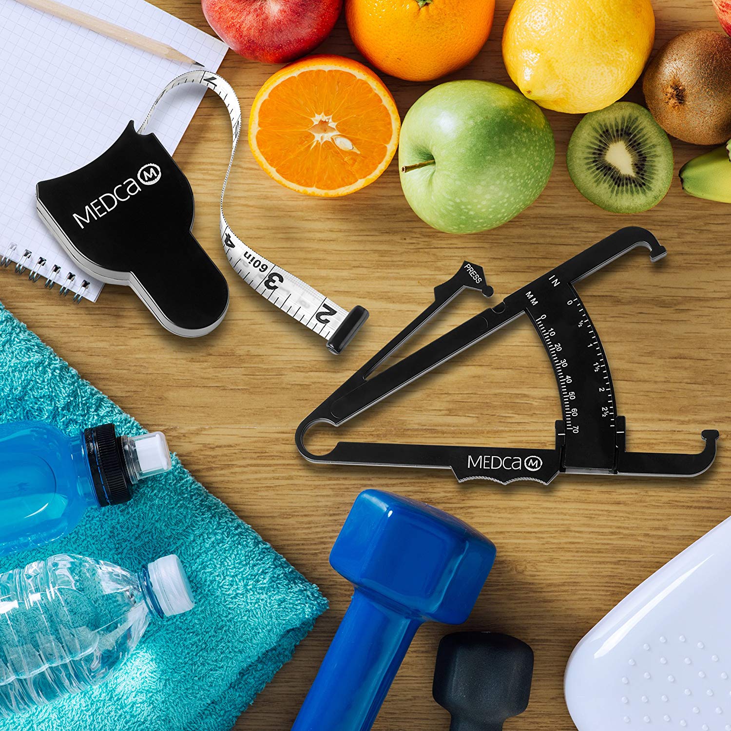 - NEW DESIGN! ACCURATELY DETERMINE BODY FAT PERCENTAGE: Manage your health wisely with the newly designed MEDca Body Fat Caliper with body measurement tape and get very accurate consistant measurements every time. That’s because our body fat caliper includes a full set including a click in caliper measure with slide ruler, instructional chart, and body measuring tape which means that you’ll be able to measure your body fat content easily and accurately, resulting in more effective dieting!